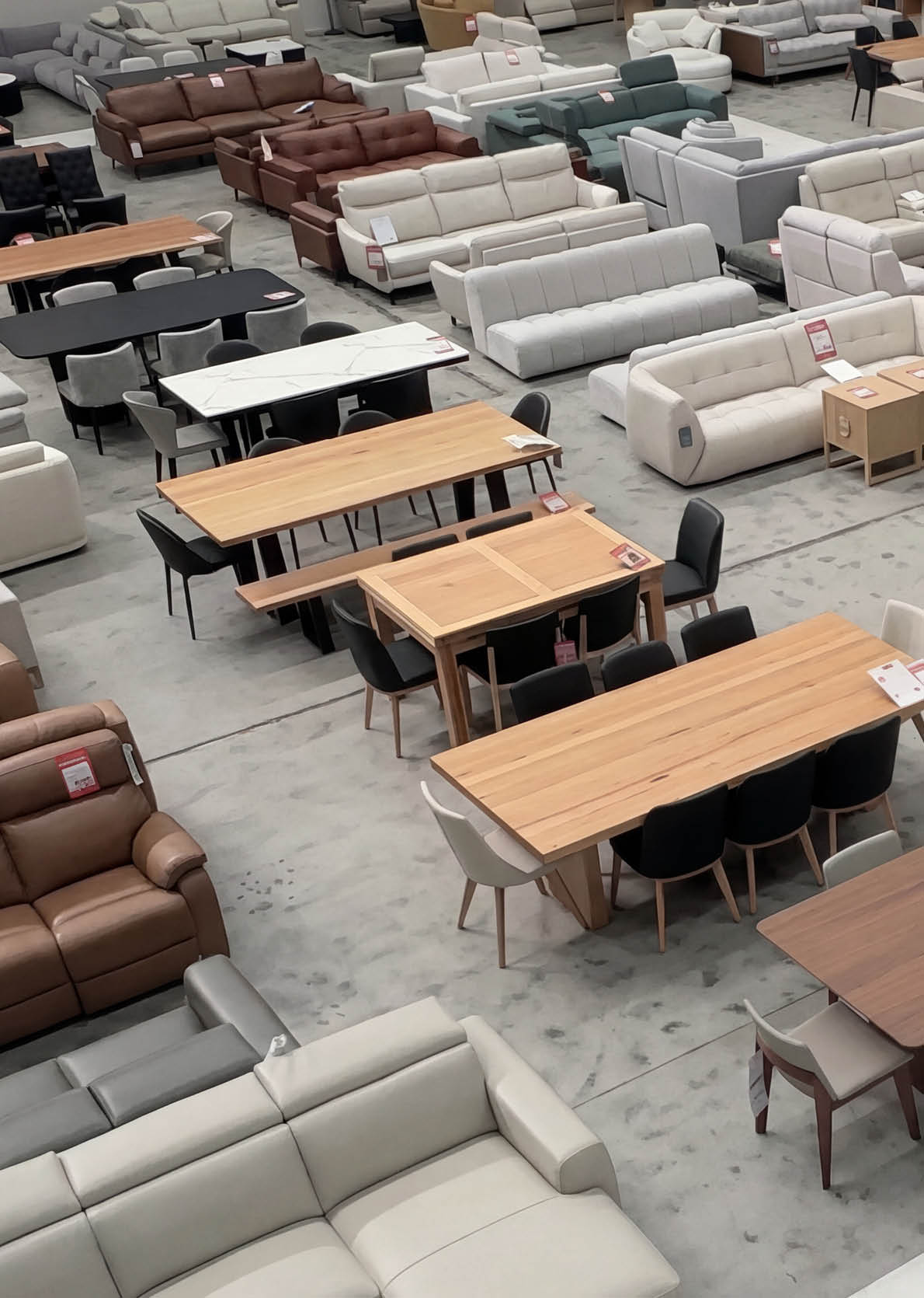 Yes! Our online store allows you to browse the full collection of lounges, dining, bedroom and outdoor furniture. You can explore fabrics, leathers, finishes, and configurations, check pricing, and securely place your order from home. It’s a convenient way to shop without compromising on quality or choice. We’ve also got 7 furniture stores across Melbourne if you prefer to experience our quality in person.