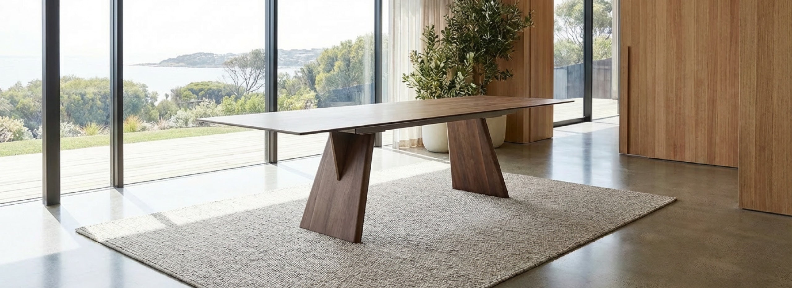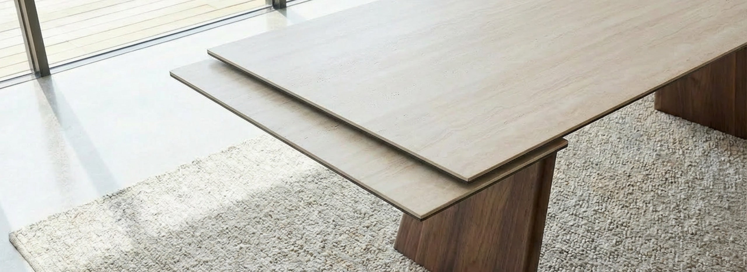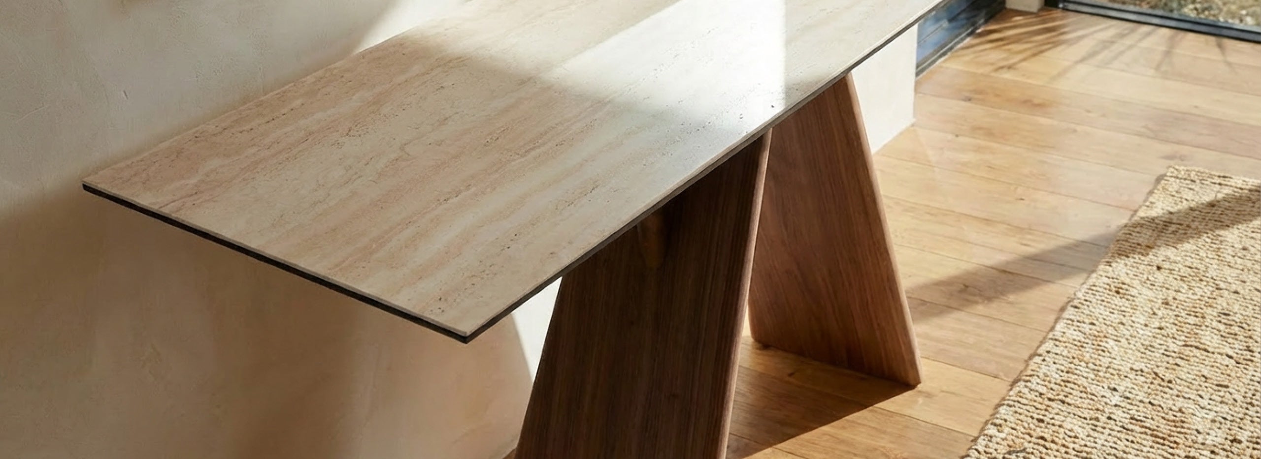 The Cara Collection is defined by refined simplicity and architectural form, pairing the richness of American walnut with the natural elegance of Spanish travertine ceramic. Designed for contemporary interiors, the range includes dining tables, consoles, and coffee tables that balance sculptural presence with everyday functionality. Thoughtfully crafted for modern living and finished with precision, each piece delivers timeless appeal and lasting durability; bringing understated sophistication to your home.