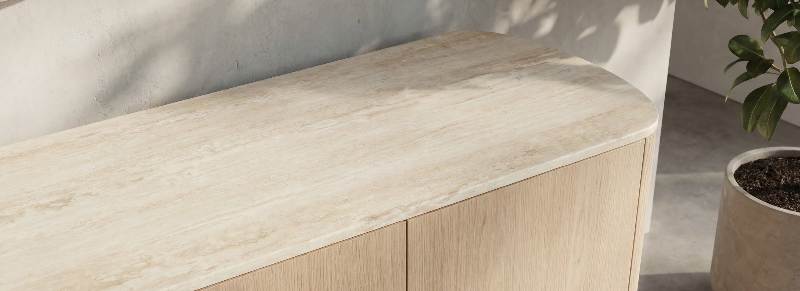 The Paragi Collection explores contrast through materiality, pairing the sculptural look of high-density marble with a travertine film finish and the grounding warmth of natural timber. Strong forms are softened by rounded edges and refined proportions, creating pieces that feel bold yet balanced within the home. Designed to anchor a space with quiet confidence, Paragi delivers a considered blend of durability, texture, and modern sophistication—backed by Adriatic’s two-year peace-of-mind warranty.