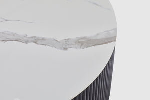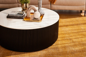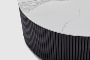 Elevate your home with our Addison coffee table. Elegantly fashioned, it features rippled timber sides and is finished with a cool polar white ceramic top. Its spacious round surface offers ample curating potential for a styled story of coveted trinkets or a stack of designer books. Pair with the matching lamp table for the complete look in your living space. Addison is an Adriatic exclusive.