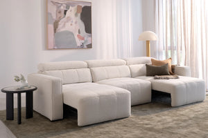 Discover effortless comfort with the Adele 3.5 Seater, where innovation meets indulgence. Wrapped in plush cloud fabric, this spacious sofa features electric sliding seats controlled by remote, allowing you to adjust your seating position without lifting a finger. Paired with adjustable headrests, you'll enjoy tailored support for every moment—from movie nights to afternoon naps. Transform your lounge into a personal sanctuary of relaxation and style - Adele is an Adriatic exclusive.