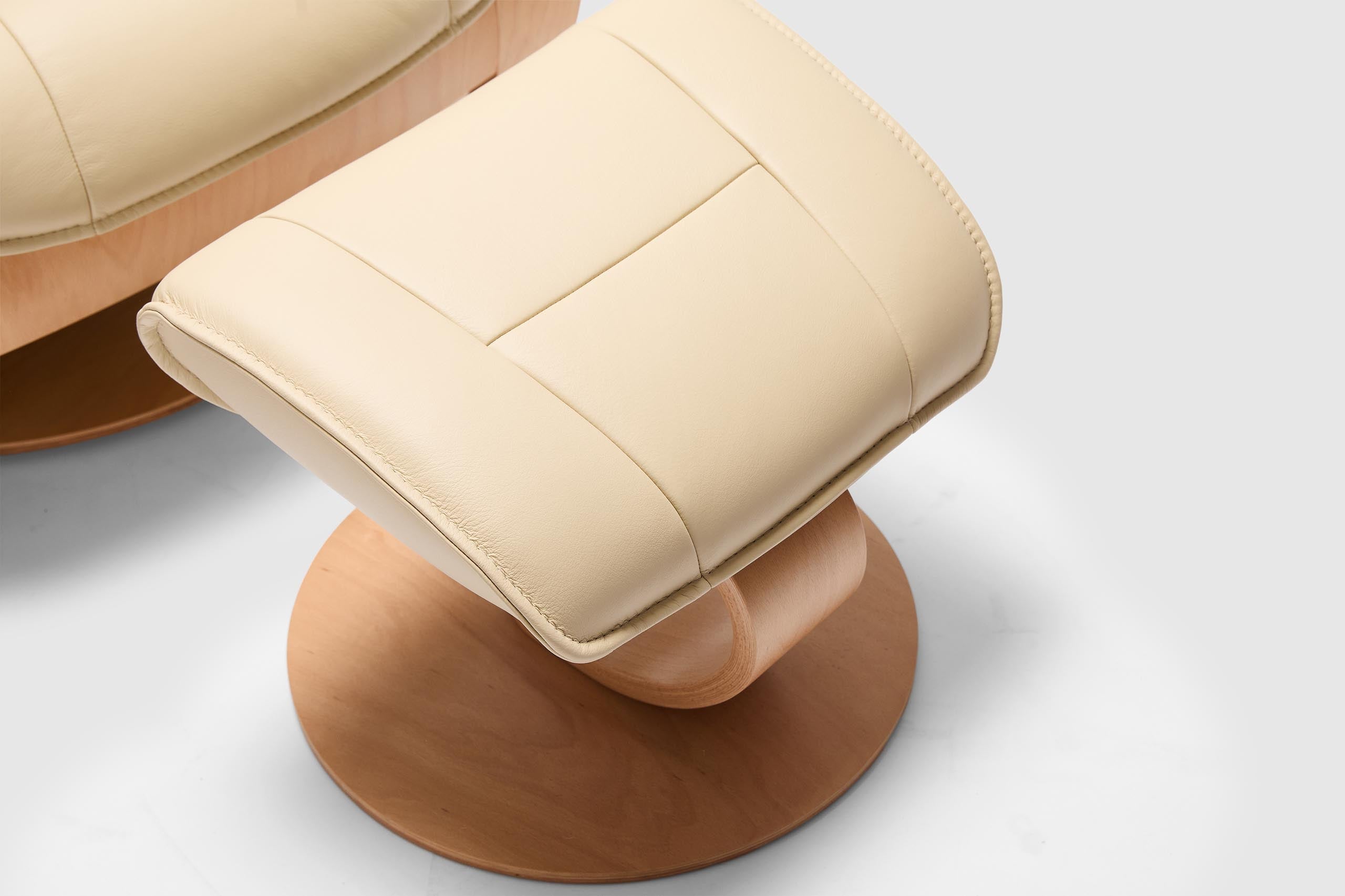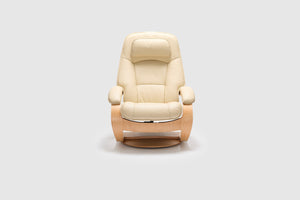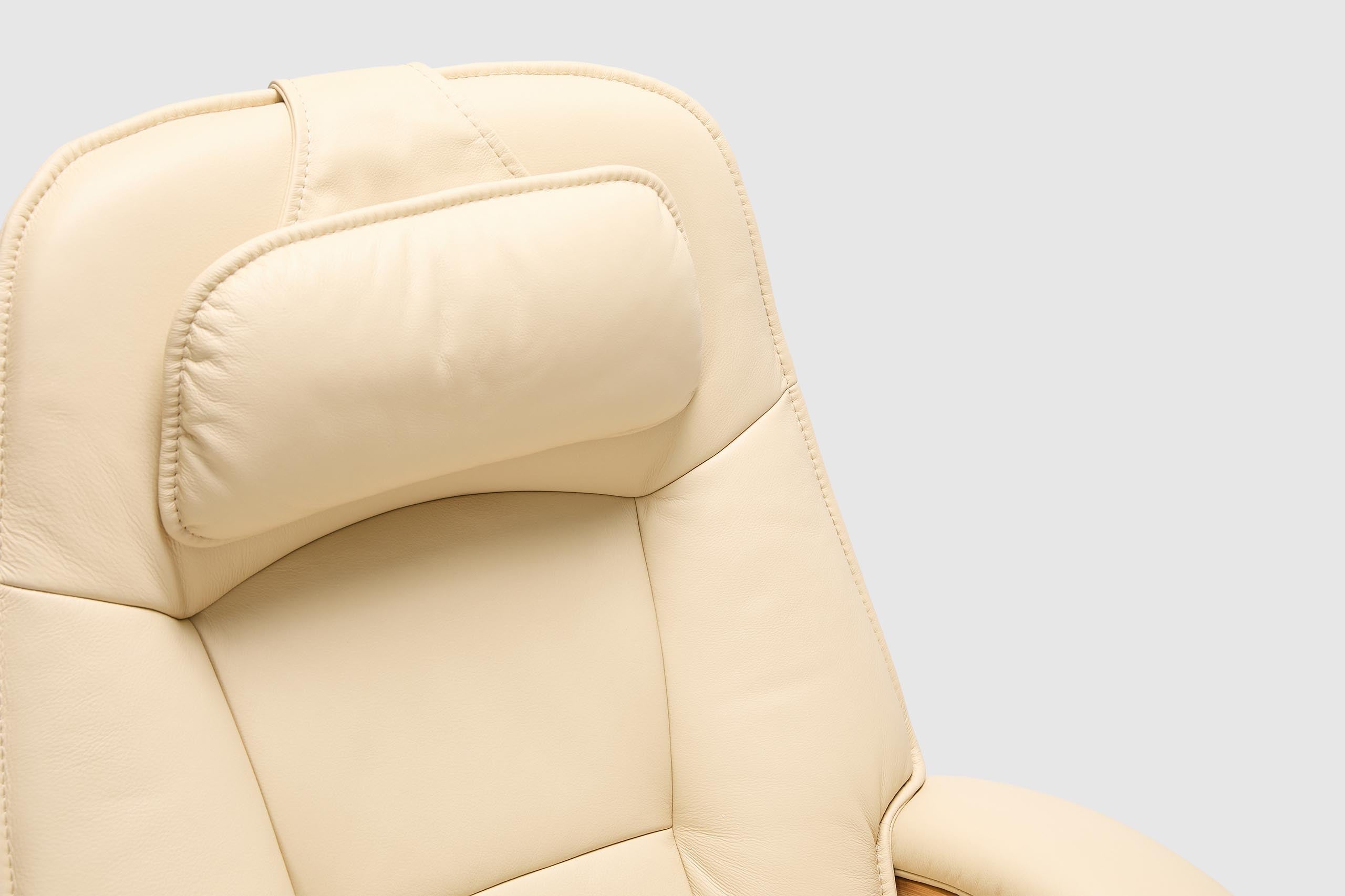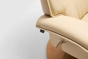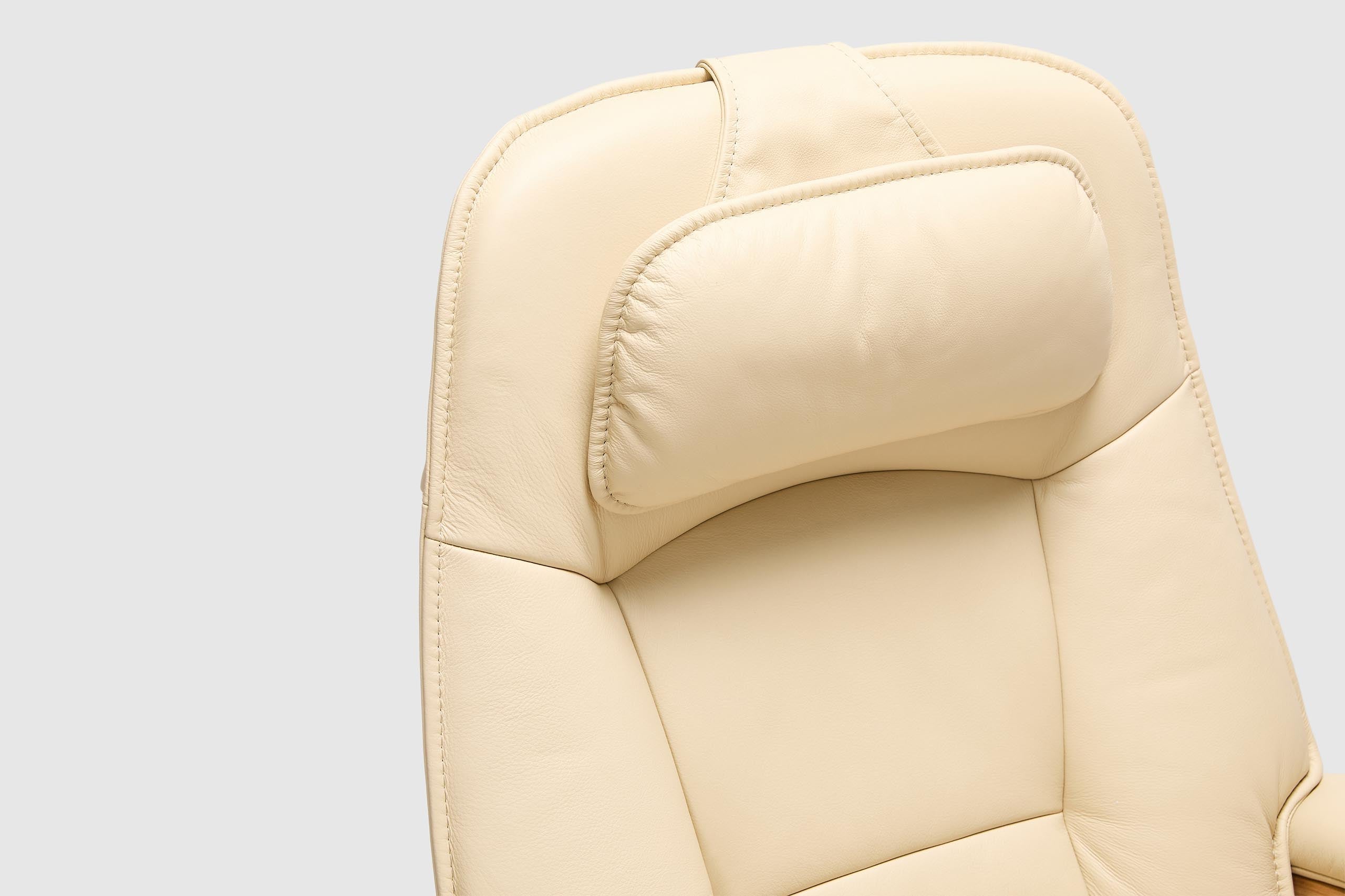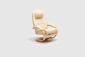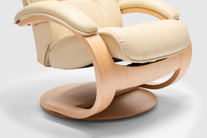 The Fjords Admiral C chair provides continuous support for your legs and back, with bases which have a 360° swivel. The base is produced in a stained laminate wood which gives it an elegant character. Available in all our leathers and select fabrics, the Admiral features an adjustable head pillow for maximum comfort and a manual release adjustable headrest angle. The chair is available in two sizes, small and large.