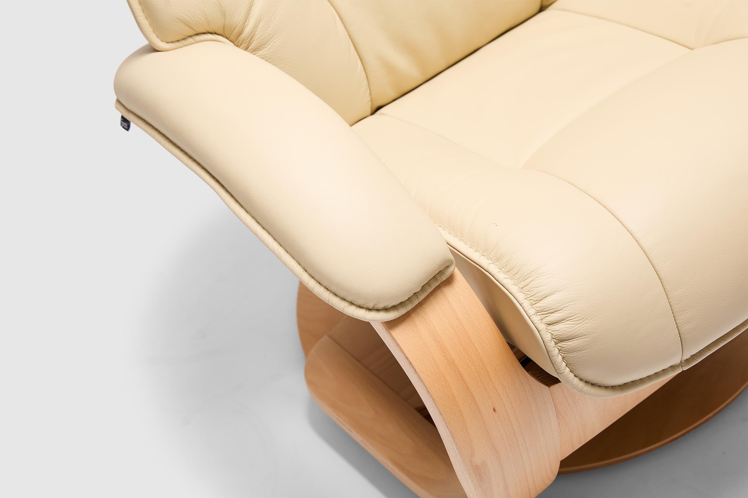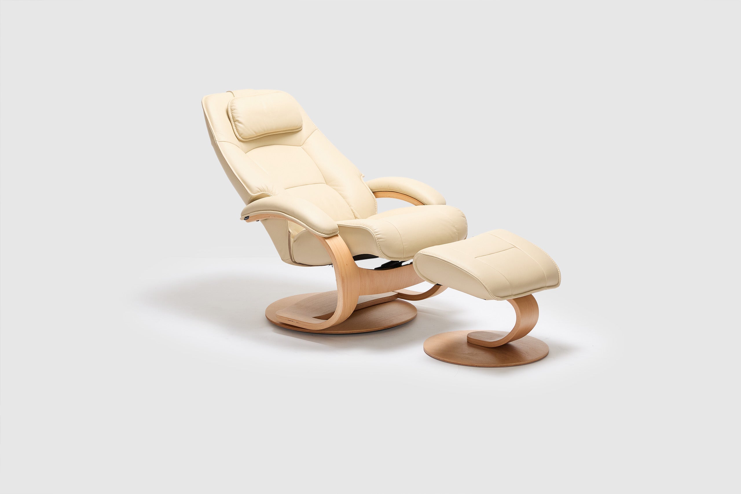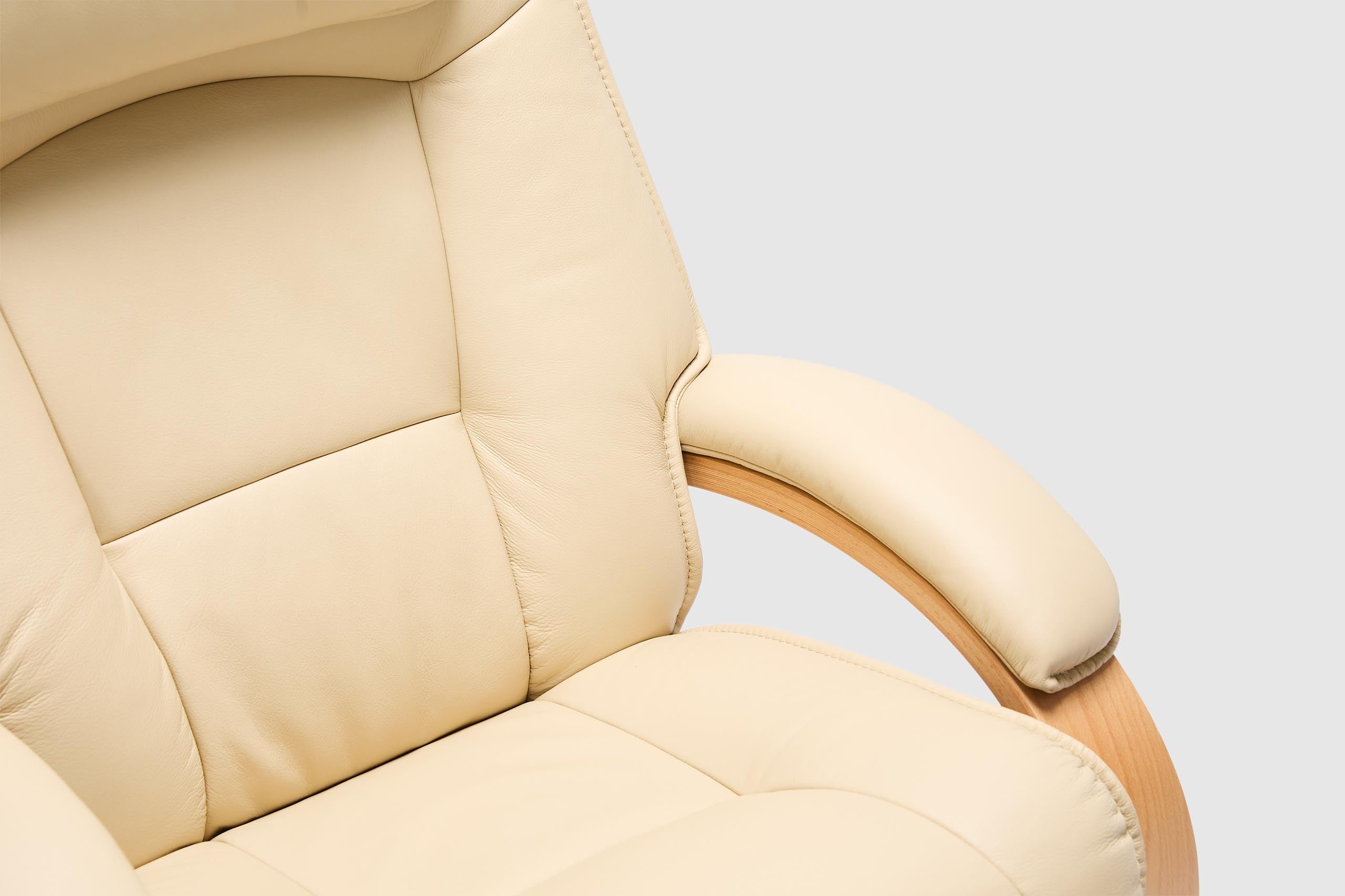 The Fjords Admiral C chair provides continuous support for your legs and back, with bases which have a 360° swivel. The base is produced in a stained laminate wood which gives it an elegant character. Available in all our leathers and select fabrics, the Admiral features an adjustable head pillow for maximum comfort and a manual release adjustable headrest angle. The chair is available in two sizes, small and large.