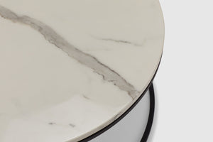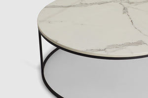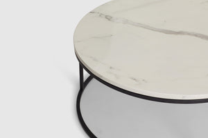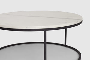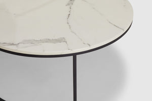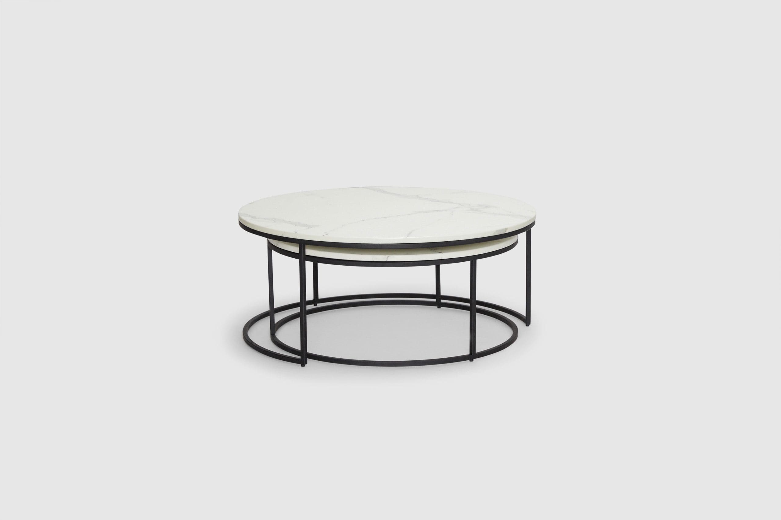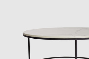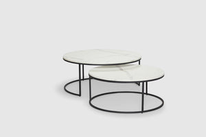 With its striking design, our Adore marble nest of tables is a fascinating addition to any modern living space. Boasting a Calacatta marble top with bold veining, Adore is finished with an elegant matt black frame. Style the Adore as one piece on its own or together for an overlapped look. Pair with the matching lamp table for the perfect look.