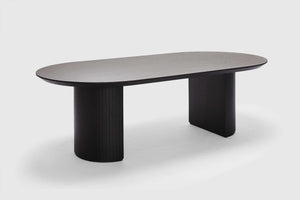 Effortlessly luxurious and chic, the Amaretto dining table offers the right amount of dark oak wooden textures. Elevate your living space with the ribbed detailing on the base and the sleek and precisely curved form - Amaretto offers a simple yet grandeur solution to entertaining. Pair with the matching entertainment unit, credenza, and coffee table for the complete look.