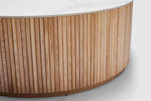 MORE CONFIGURATIONS & SIZESElevate your home with our Amelie coffee table. Elegantly fashioned, it features rippled natural oak timber sides and is finished with a cool matt white ceramic top. Its spacious round surface offers ample curating potential for a styled story of coveted trinkets or a stack of designer books. Pair with the matching side table for the complete look in your living space. Amelie is an Adriatic exclusive.
