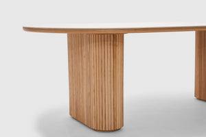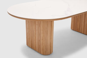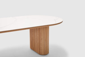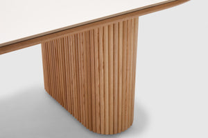 Elevate your home with our Amelie dining table. Elegantly fashioned, it features rippled natural oak timber sides and is finished with a cool matt white ceramic top. Its spacious oval surface offers space when entertaining friends and family. Pair with the matching collection for the complete look in your living space. Amelie is an Adriatic exclusive.
