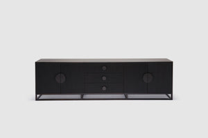 Boasting a sleek yet generous form, our Artie buffet is sure to be the anchor of any home. Four doors and three drawers feature circular handle designs, presenting subtle curved lines to the design, while the vertical wood slatted panels ensures this unit is an undeniable staple which elevates your space. The wide and generous size offers ample display and storage space. Full range includes matching dining table, entertainment unit, coffee table, and console.