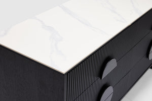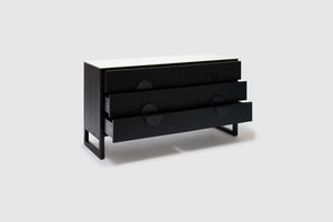 Enhance your bedroom with the stylish Artie dresser - ceramic. Combining personality and functionality, this dresser features six drawers with ample storage, while the slatted timber panels add a touch of charm. The circular handles make it a perfect fit for contemporary bedrooms, adding a modern and sleek touch to your space.