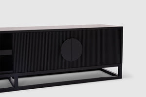 MORE CONFIGURATIONS & SIZESBoasting a sleek design, our Artie entertainment unit in wenge is sure to be the focal point of any space. Four doors with semi circle handle designs present subtle curved lines to the design, while the vertical wood slatted panels ensures this unit is an undeniable staple which anchors the room. The wide and generous size offers ample display and storage space. Full range includes matching buffet, dining table and bedding range.