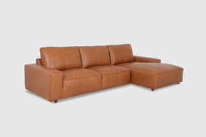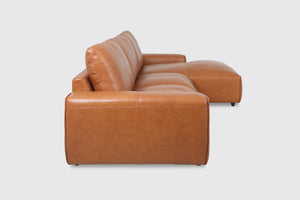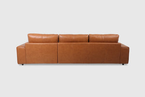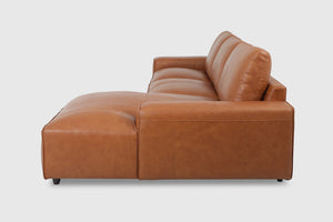 MORE CONFIGURATIONS & SIZESThe Bond Chaise Sofa brings together generous scale and refined comfort in a timeless design. Crafted in vintage leather, this sofa features wide armrests, deep seating and naturally textured leather upholstery that softens beautifully with age. The supple vintage-finish leather is supported by a sturdy timber frame, giving the piece a grounded, architectural feel. Its spacious chaise creates an inviting zone for stretching out, while the modular layout suits open-plan living. With its clean lines, oversized cushions and rich, lived-in leather, Bond delivers classic luxury with everyday practicality.