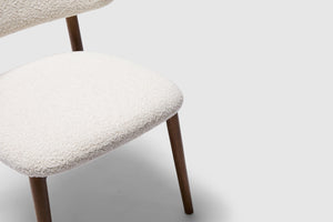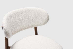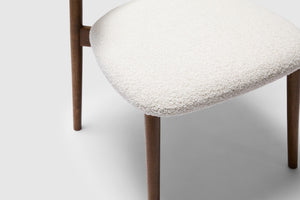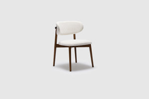The Celeste Dining Chair displays contemporary elegance with its luxurious cloud fabric and rich walnut timber stain finish. This exclusive piece seamlessly blends comfort with refined aesthetics, creating an elevated dining experience. Pair with the matching bar stool for the perfect look.