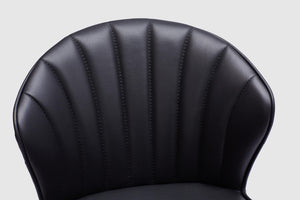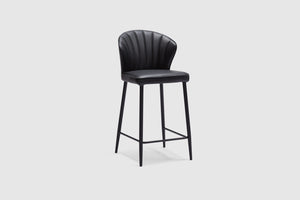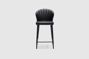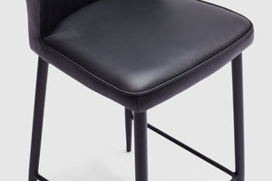 The curved body and slender base of the Charlotte bar stool create a distinct yet clean silhouette. Prestige Black leather envelops the chair, presenting a modern stool that works well in any dining space. Pair with the matching chair for the ultimate look!