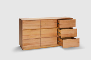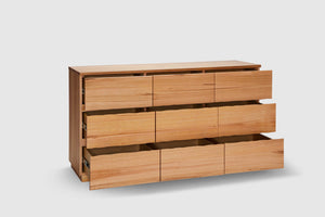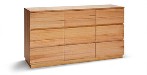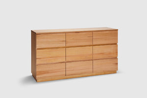 Offering natural beauty with a coastal twist, our Collins range of bedding is sure to make itself home in any bedroom. The dresser features 9 drawers, making it ideal for storage. Fall in love with the stunning features of Australian Messmate timber which adds both elegance and charm. Pair with the matching bedframe, bedside tables, tallboy, and mirror for the perfect look in your home.
