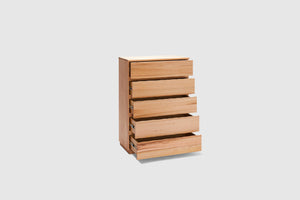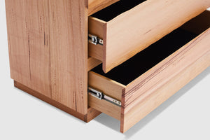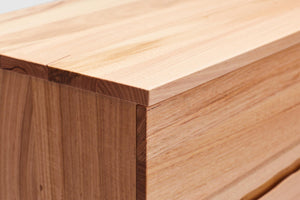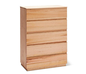 Offering natural beauty with a coastal twist, our Collins range of bedding is sure to make itself home in any bedroom. The tallboy features 5 drawers, making it ideal for storage. Fall in love with the stunning features of Australian Messmate timber which adds both elegance and charm. Pair with the matching bedframe, bedside tables, dresser, and mirror for the perfect look in your home.