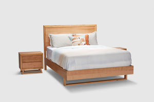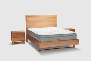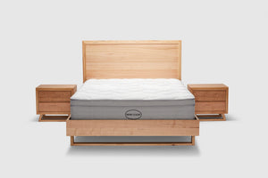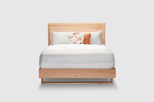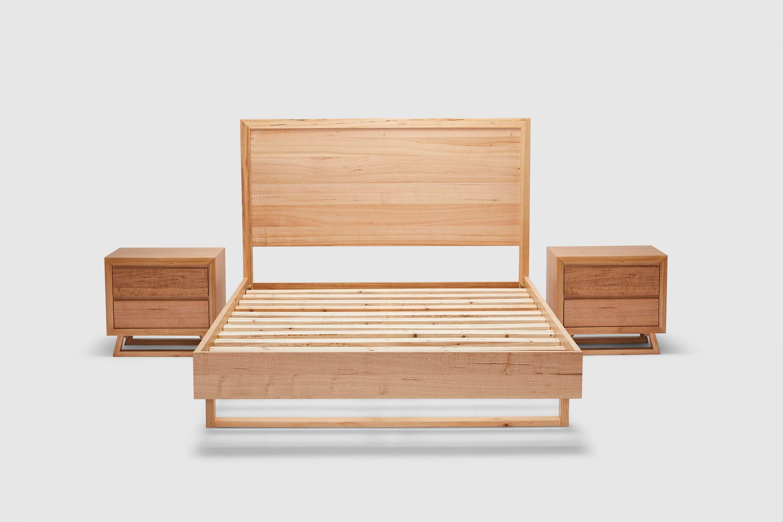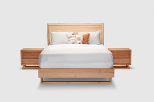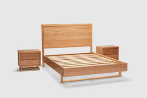 Inspired by Scandi design, the Dante bed offers an understated centrepiece through modern lines and a geometric design. The Australian Messmate timber construction ensures this suite is both minimalistic and stylish. A statement piece designed to last, the full range features matching bedside table, dresser, and tallboy.