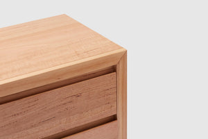 Inspired by Scandi design, the Dante offers an understated centre piece through modern lines and a geometric design. The Australian Messmate timber construction ensures this suite is both minimalistic and stylish. A statement piece designed to last, the full range features matching bedframe, tallboy, and dresser.