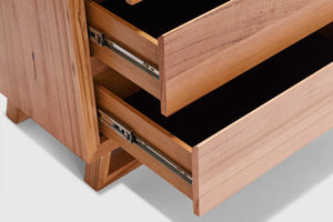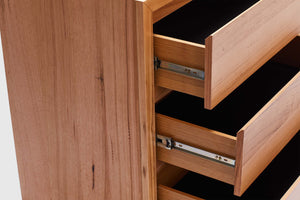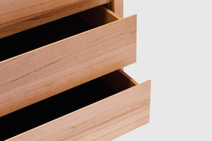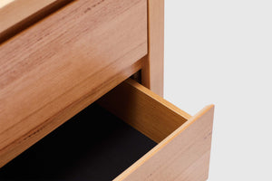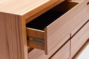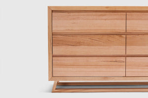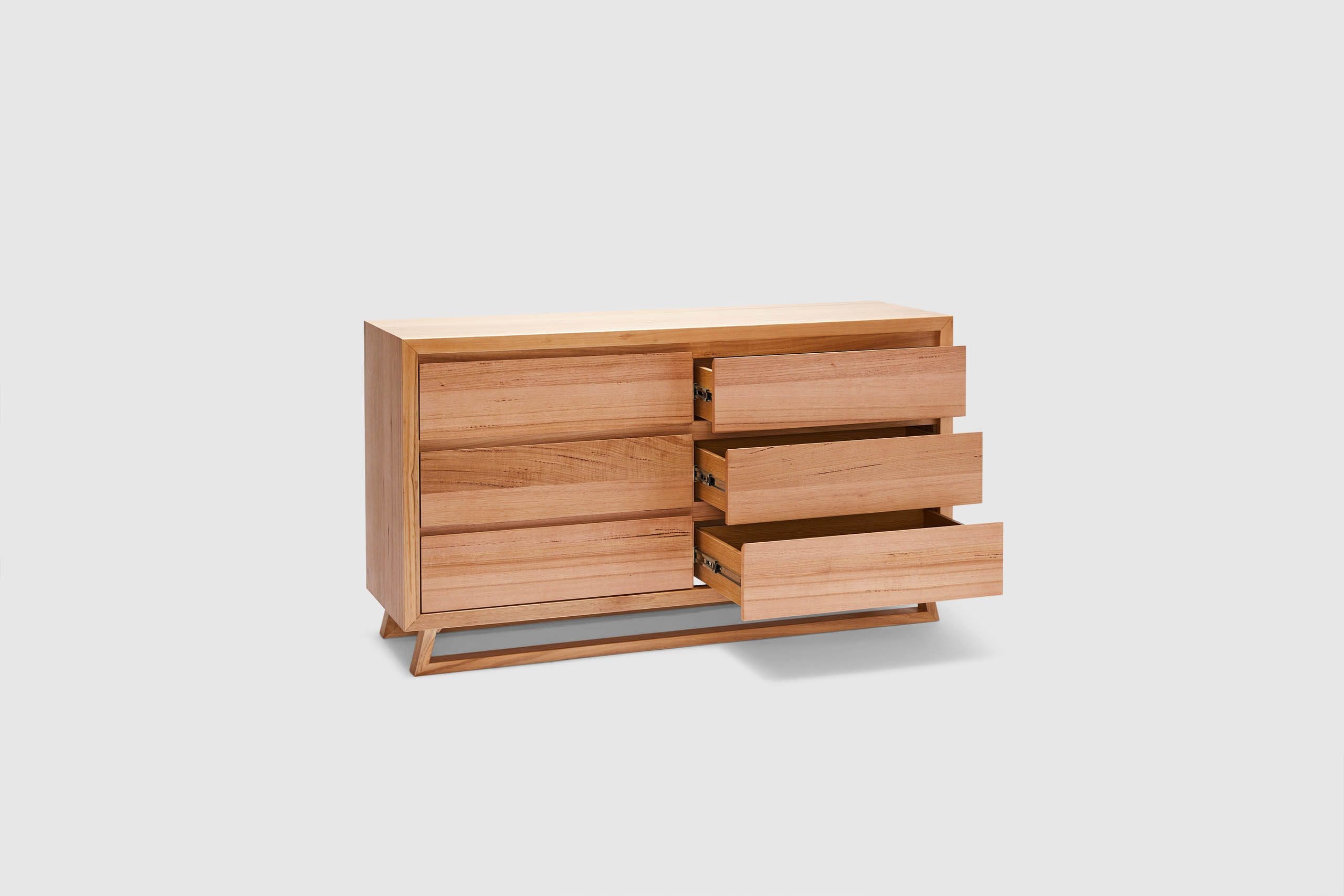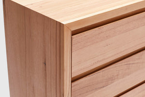 Inspired by Scandi design, the Dante offers an understated centrepiece through modern lines and a geometric design. The Australian Messmate timber construction ensures this suite is both minimalistic and stylish. A statement piece designed to last, the full range features matching bedframe, bedside table, and tallboy.