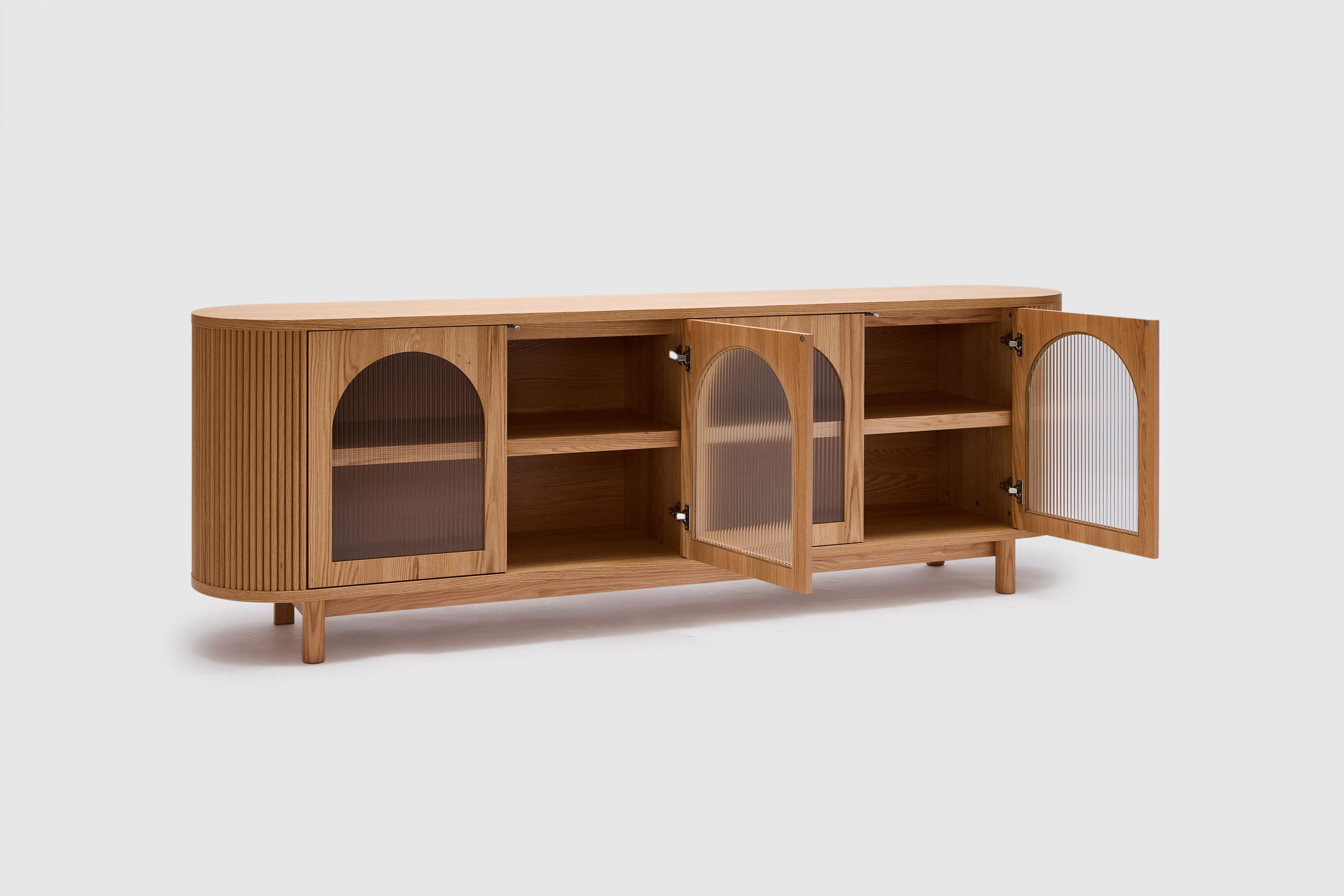 Elevate your space with the sculptural elegance of the Gloria Buffet, available in both 3-door and 4-door sizes to suit your layout and storage needs. Crafted with refined fluted detailing and a softly curved silhouette, Gloria brings a sense of modern luxury to dining rooms, entryways, or open-plan interiors.