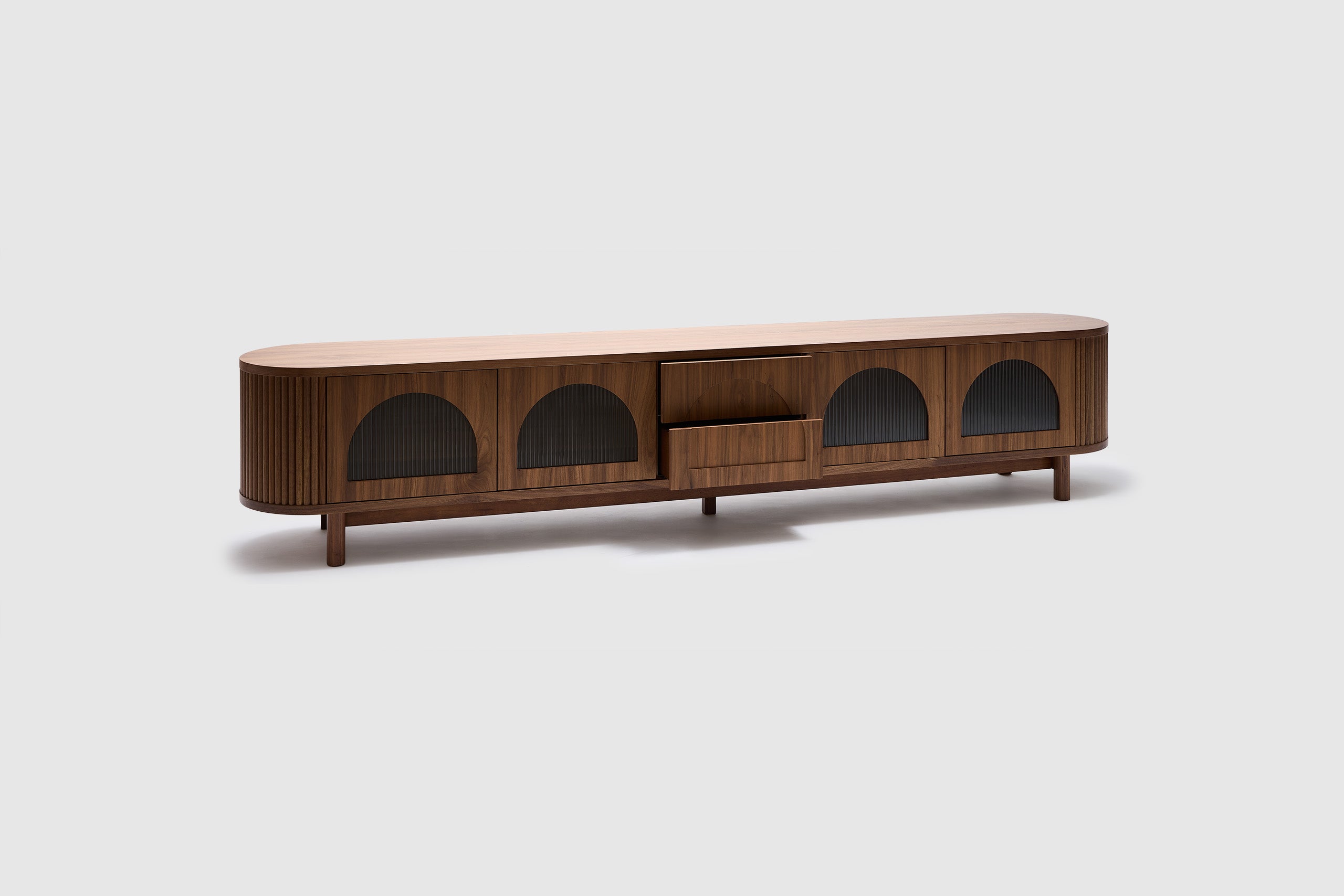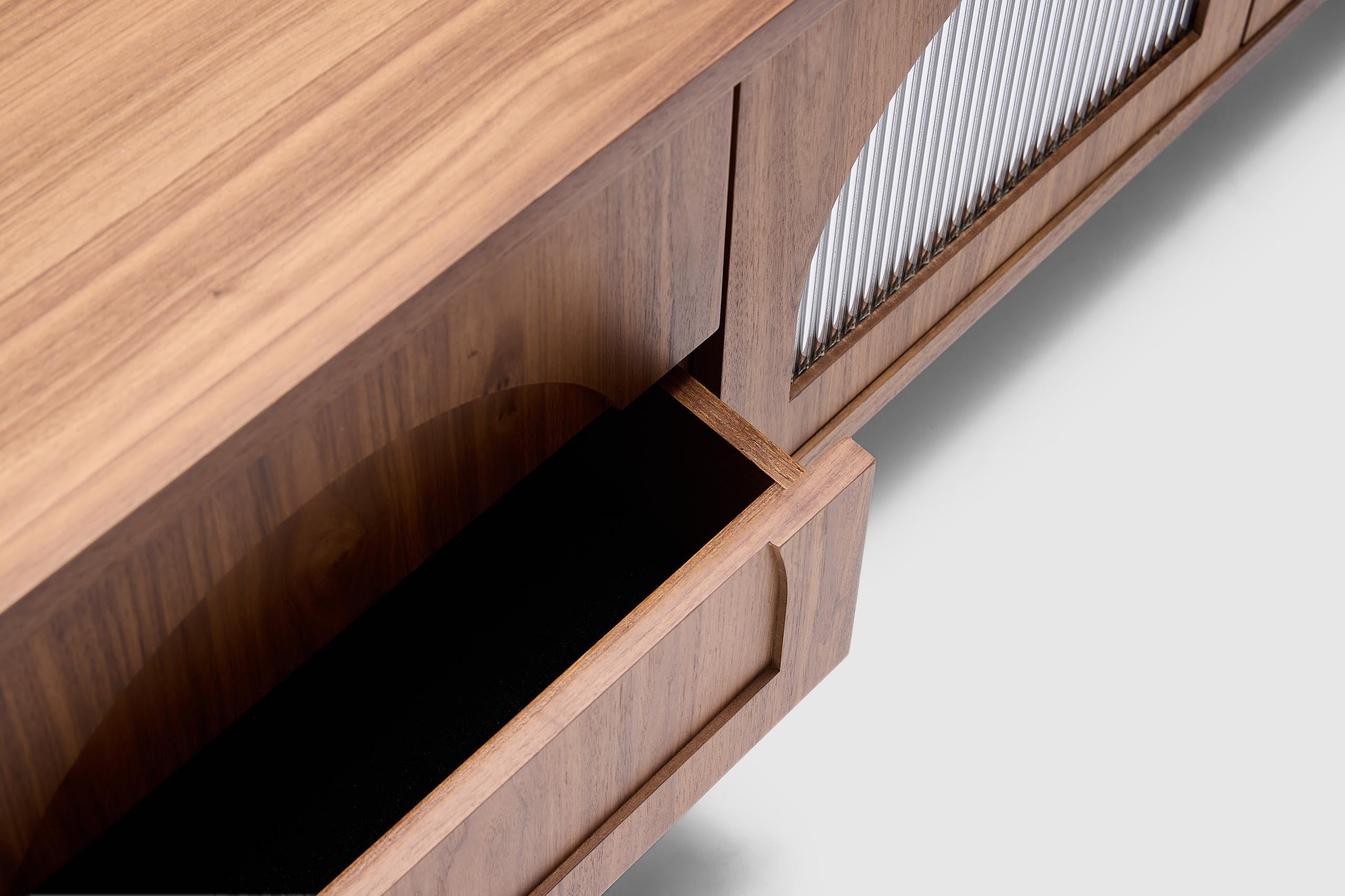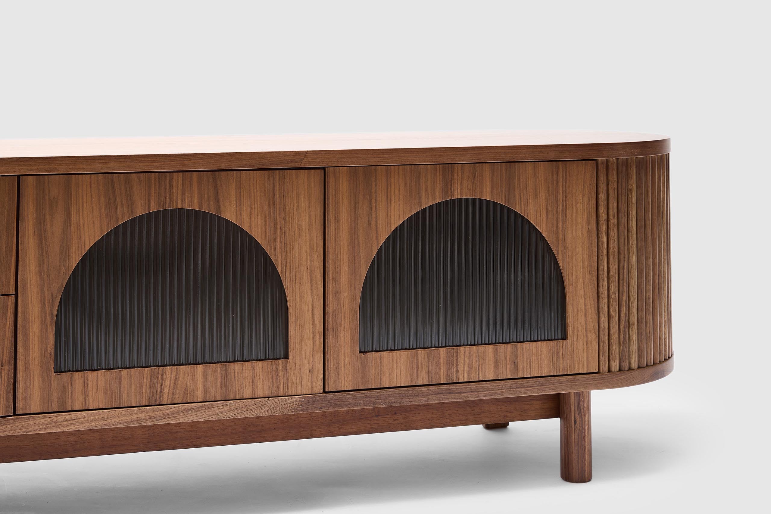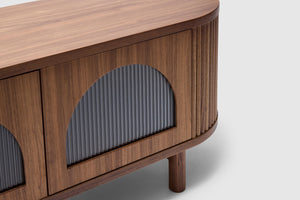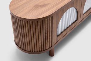 Elevate your space with the sculptural elegance of the Gloria Entertainment Unit, crafted with refined fluted detailing and a softly curved silhouette, Gloria brings a sense of modern luxury to dining rooms, entryways, or open-plan interiors.