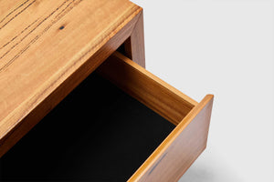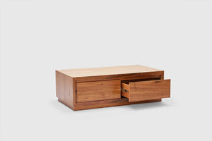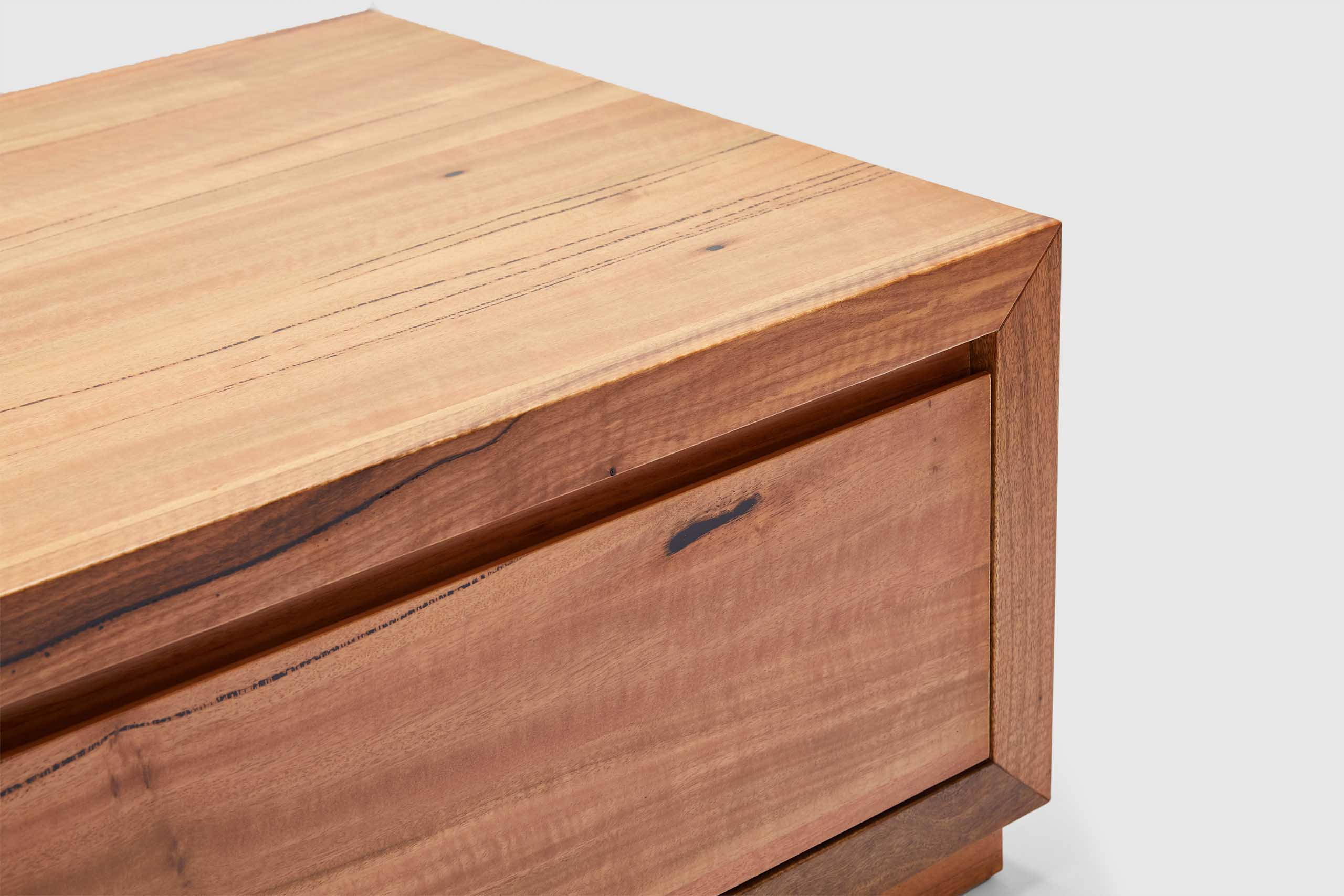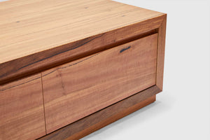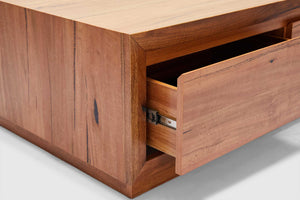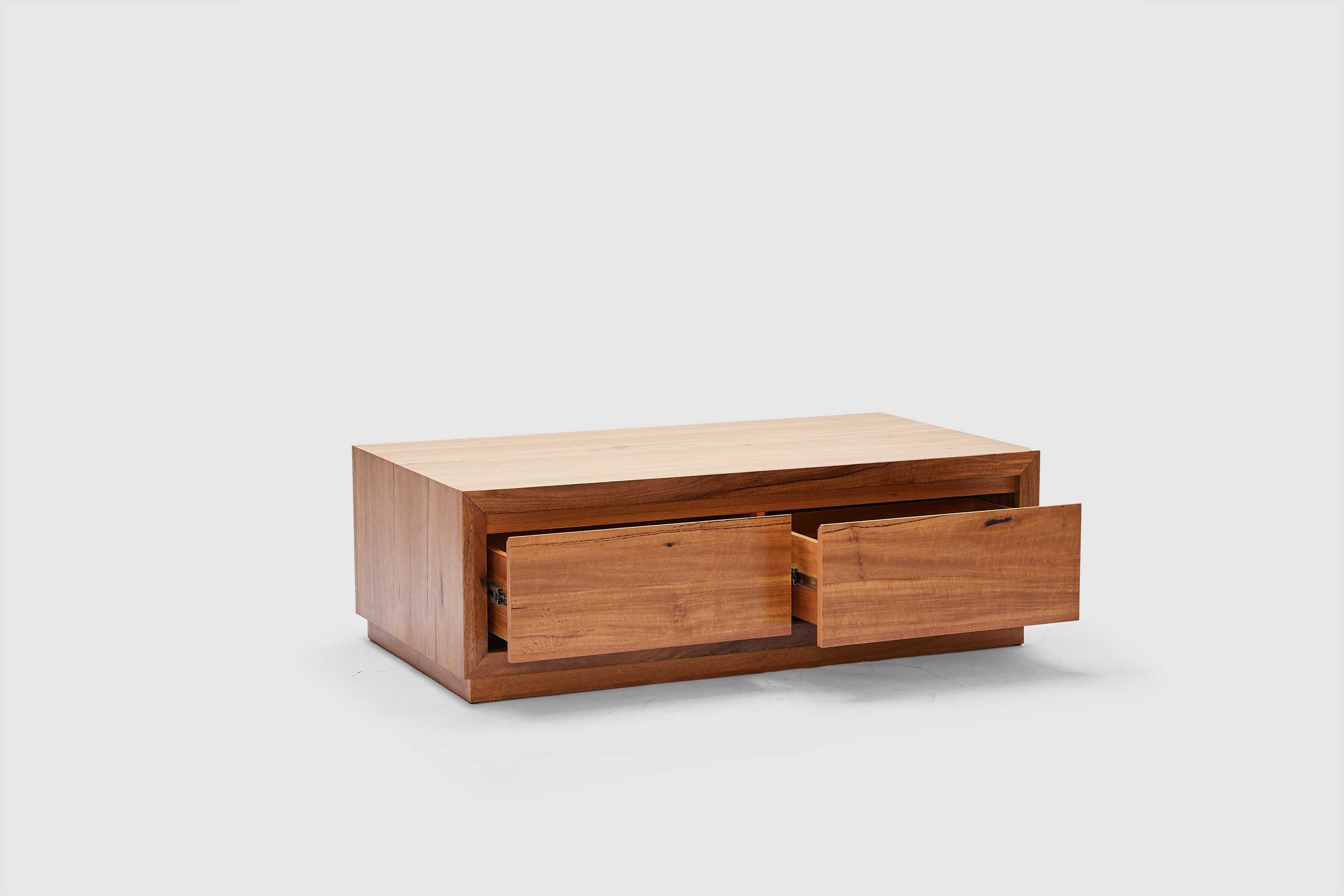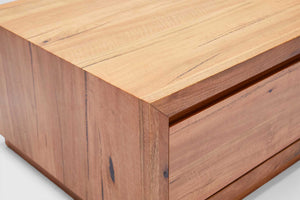 A coffee table that’s perfect for your functional living area. The Kalgoolie coffee table has a large rectangular top that comfortably holds anything from magazines and books to centrepieces and decorative pieces. Plus, it has two drawers where you can tuck away remotes, controllers and other things that you want to keep out of sight when you have guests over. The Australian Marri timber construction and spacious storage make this coffee table a quintessential part of your living room. Full range includes matching dining table, buffet, entertainment unit, and lamp table.