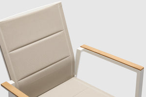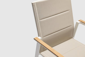 Sleek yet comfortable, the Lukala outdoor dining chair makes a bold and stylish statement in any outdoor setting. It’s the perfect seating option to wine and dine outdoors with family and friends! With a strong and sturdy powder coated matt white aluminium frame wrapped in textilene synthetic fabric, Lukala looks cool and stays robust to give you company for those long summer nights. It pairs well with our range of outdoor dining tables that will elevate your outdoor décor to the next level.
