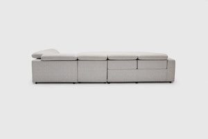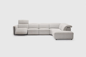 Our Midas modular lounge showcases the best in reclining technology. With space for the whole family, this modular features one electric recliner with easy to use adjustable headrests, ensuring you'll find your perfect position on the lounge. Choose from a selection of fabrics to make an impressive design statement in your home!