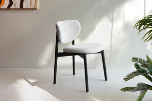 Discover the Miki Dining Chair, an exclusive piece that elevates your dining experience. Crafted with a plush fabric seat and backrest, this chair delivers the comfort you deserve during meals and gatherings. Its sophisticated black time frame fits seamlessly into any home aesthetic, from minimalist to traditional settings.