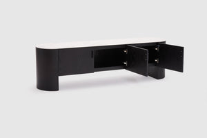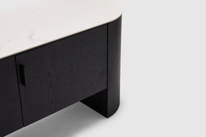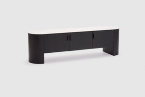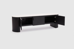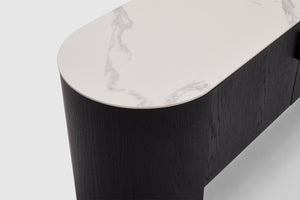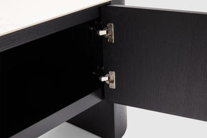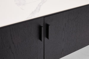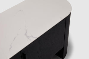 Keep all your devices, consoles and remotes neatly stored in the exclusively designed Milos entertainment unit. Mixing black oak timber with a sleek polar white ceramic finished top, Milos features three soft closing doors - giving the piece important practicality.