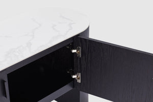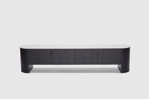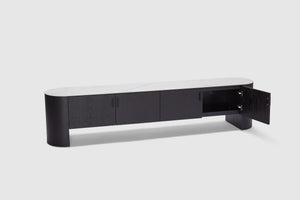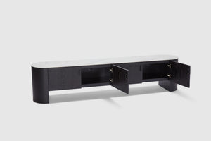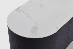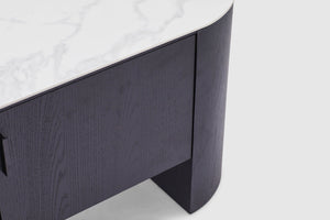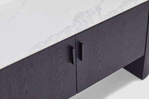 Keep all your devices, consoles and remotes neatly stored in the exclusively designed Milos entertainment unit. Mixing black oak timber with a sleek polar white ceramic finished top, Milos features four soft closing doors - giving the piece important practicality.