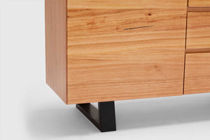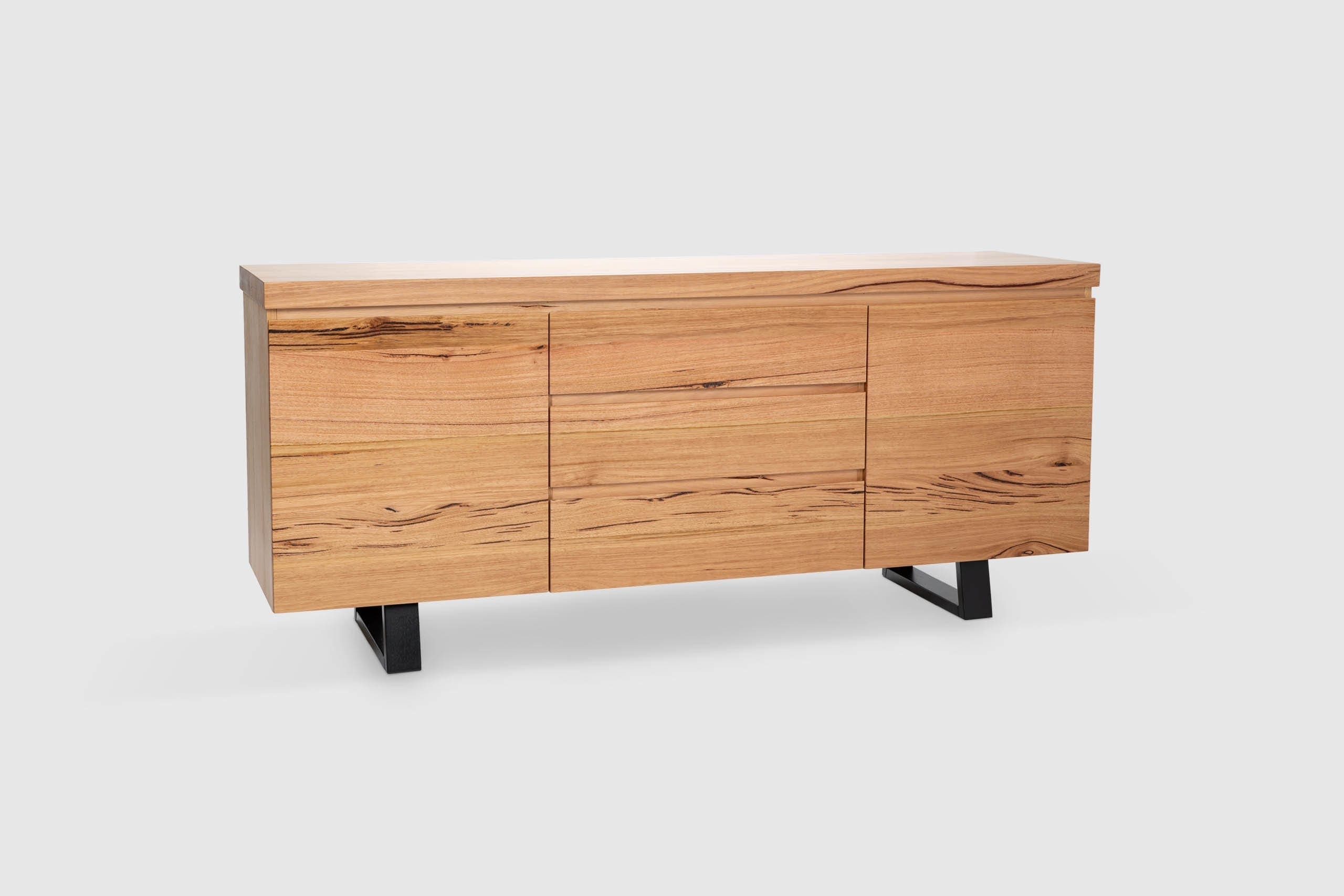 MORE CONFIGURATIONS & SIZESThe Montana combines the stunning features of Australian messmate timber with industrial black timber legs. The buffet accentuates the natural shape of the tree line & would be a welcome addition to your dining room. Also available with matching dining table, entertainment unit, console, coffee and lamp table!