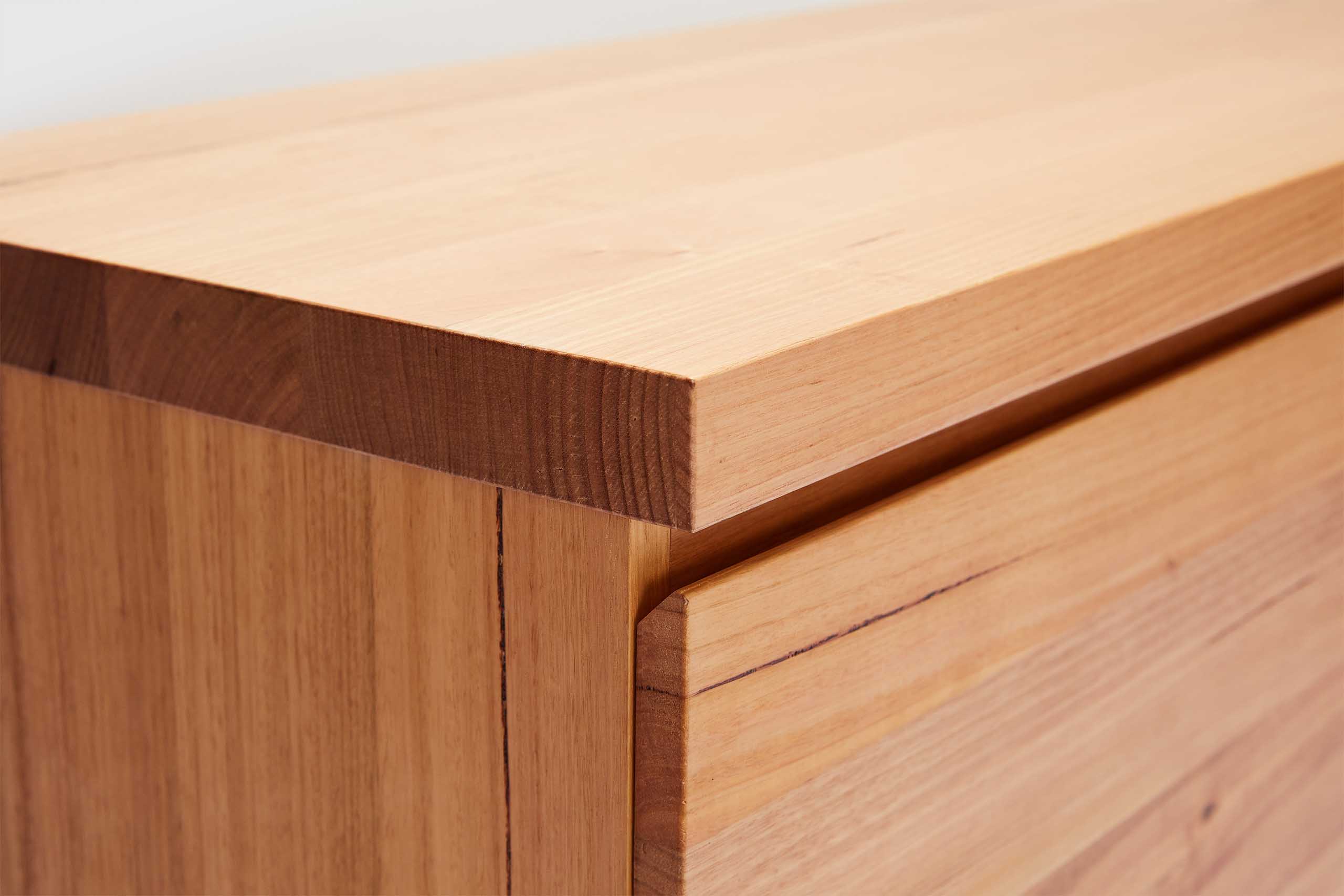 Messmate is a well-known and regarded Australian timber, with variations in colour from pale browns & black markings, through to light yellows and/or peach. A species rich and warm in detail, with moderately coarse textures of interlocking and/or straight grain features. Gum veins and crevasses are an inherent feature of Messmate, which has a moderate hardness and strength making it a versatile choice for furniture design.