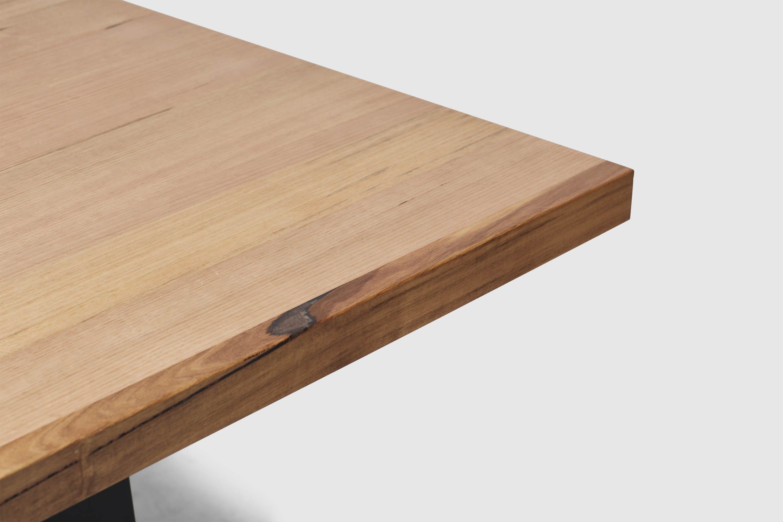 Messmate is a well-known and regarded Australian timber, with variations in colour from pale browns & black markings, through to light yellows and/or peach. A species rich and warm in detail, with moderately coarse textures of interlocking and/or straight grain features. Gum veins and crevasses are an inherent feature of Messmate, which has a moderate hardness and strength making it a versatile choice for furniture design.