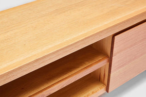 Messmate is a well-known and regarded Australian timber, with variations in colour from pale browns & black markings, through to light yellows and/or peach. A species rich and warm in detail, with moderately coarse textures of interlocking and/or straight grain features. Gum veins and crevasses are an inherent feature of Messmate, which has a moderate hardness and strength making it a versatile choice for furniture design.