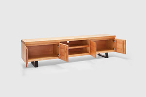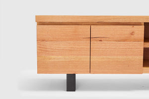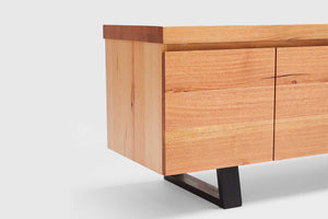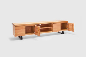 MORE CONFIGURATIONS & SIZESThe Montana combines the stunning features of Australian Messmate Timber. It features 4 soft closing doors and is finished with industrial black timber legs. Also available with matching dining table, buffet, console, coffee and lamp table.