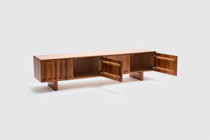 Meet the Penia Entertainment Unit—where blackwood timber meets playful design. This exclusive piece from our Penia Collection is your answer to stylish storage chaos. Tuck away remotes, cables, and streaming devices in hidden compartments while the rich grain of Australian blackwood timber steals the show. It's furniture that works as hard as it looks good, bringing both function and flair to your entertainment space.