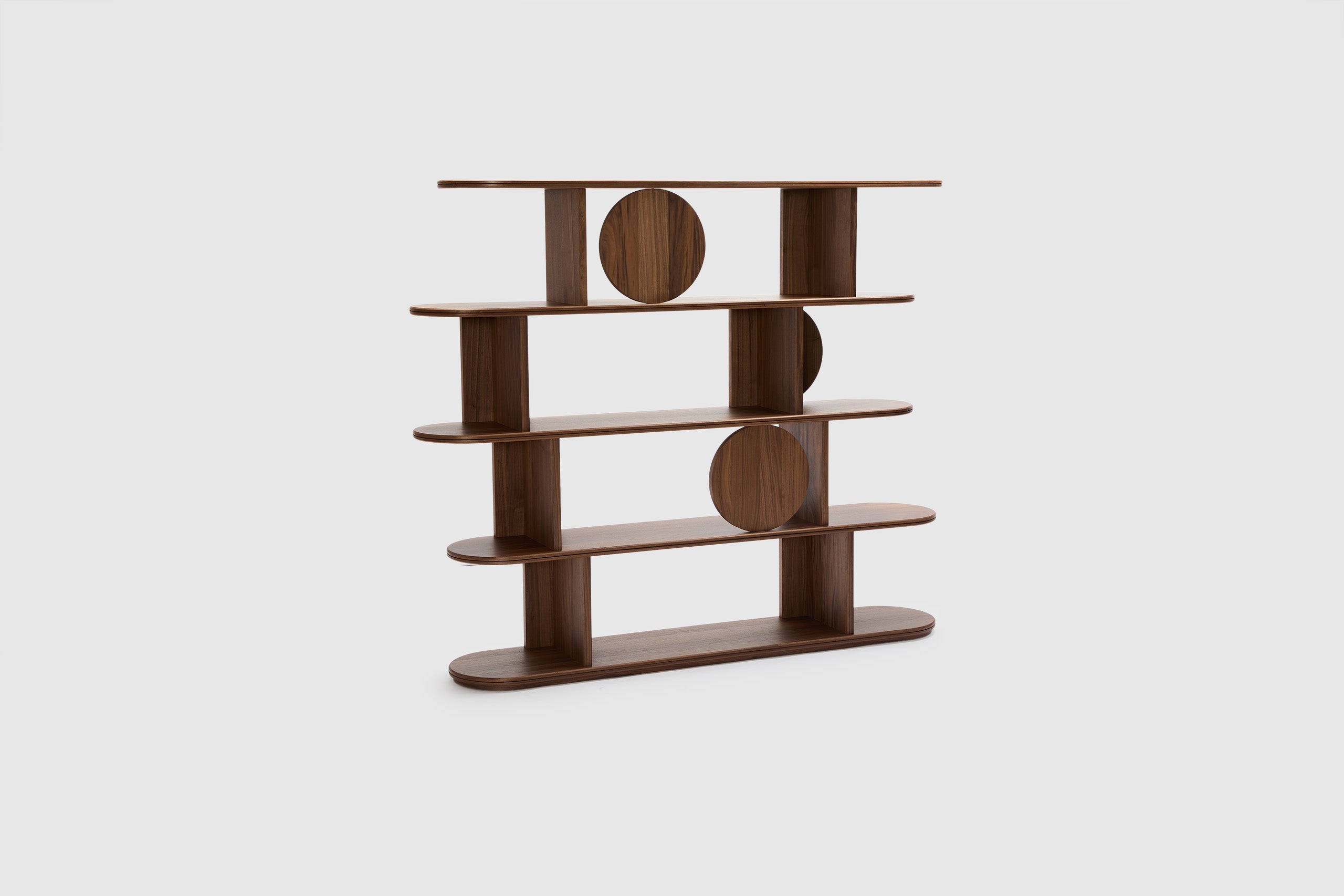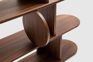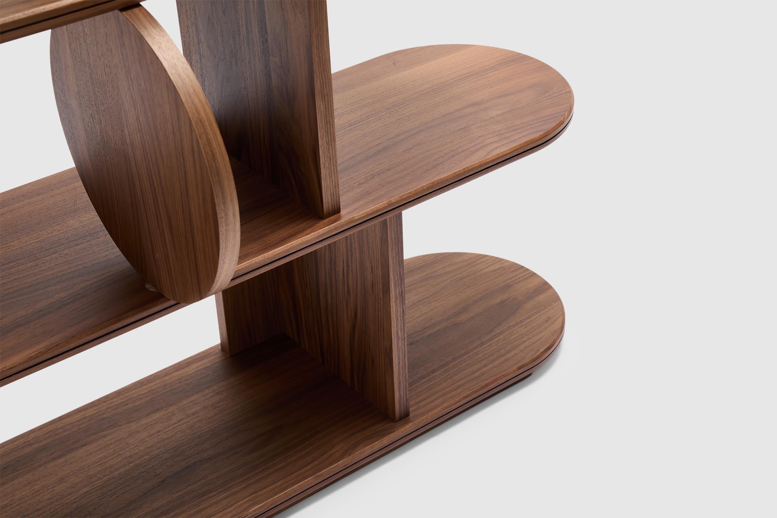 The Remi Bookcase brings contemporary elegance to any room with its striking American walnut construction and refined silhouette. This on-trend piece features clean lines and thoughtful proportions, making it equally suited to modern minimalist spaces or eclectic interiors. The warm, rich tones of walnut add depth and character, perfect for displaying curated collections or creating a focal point in your living area.
