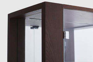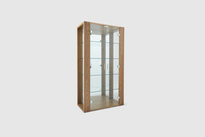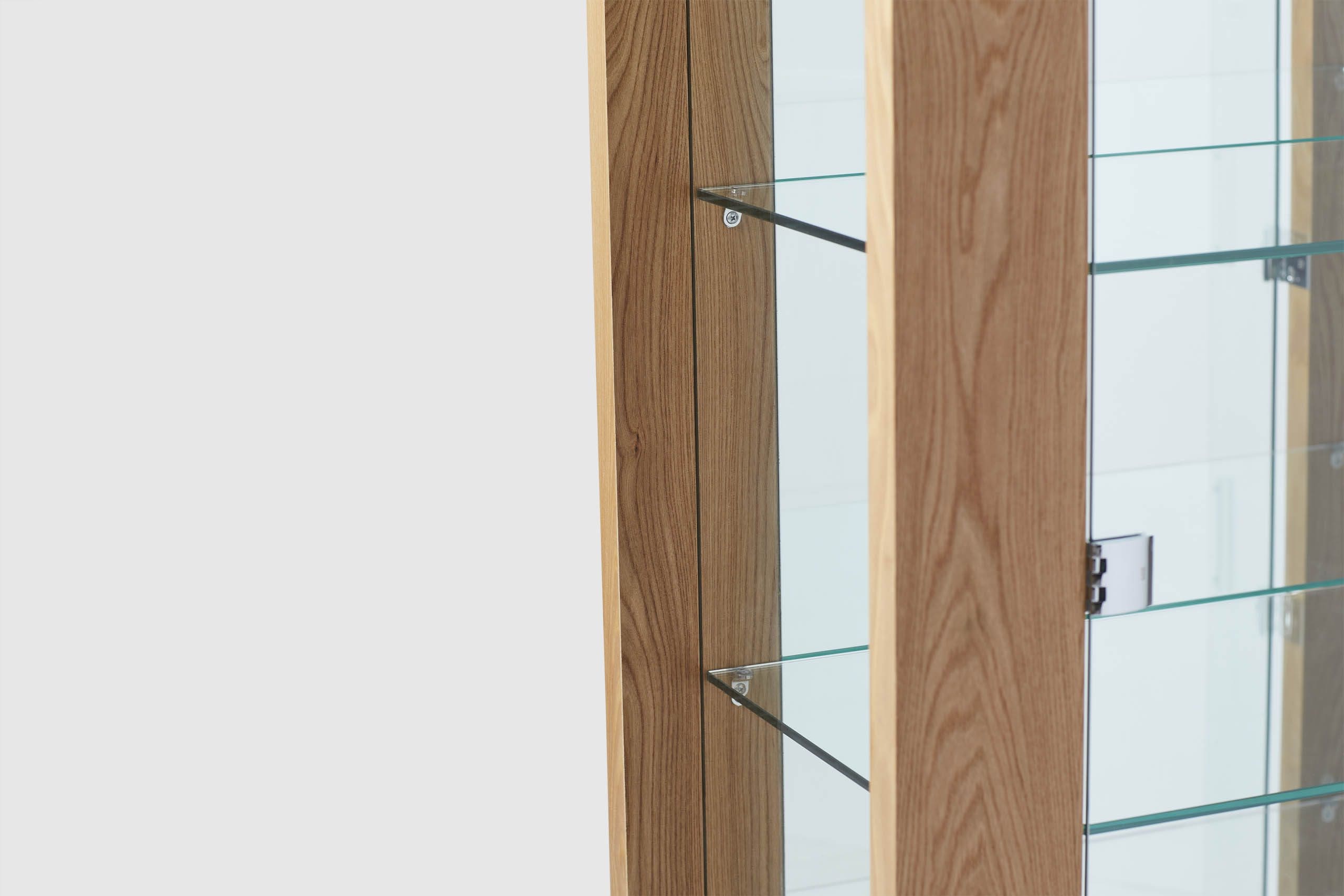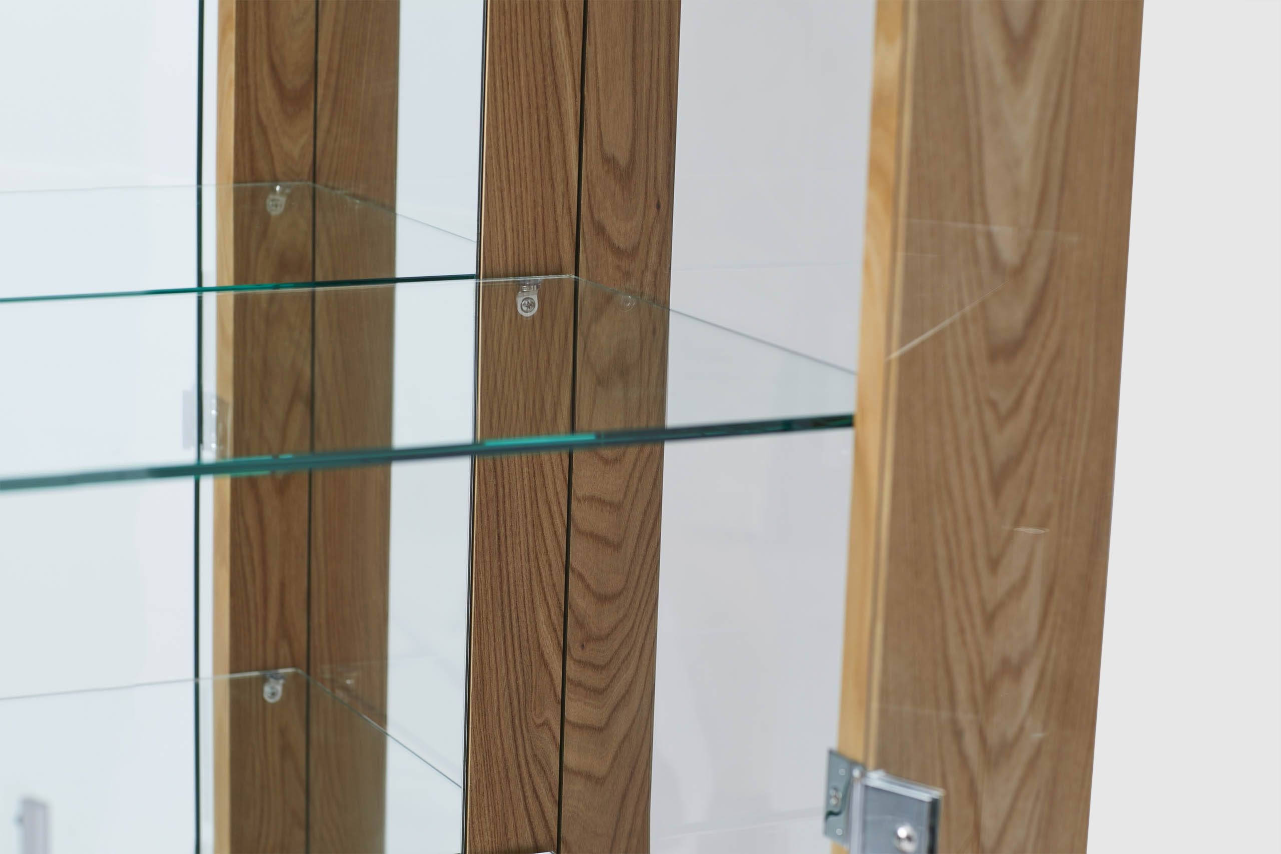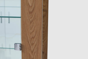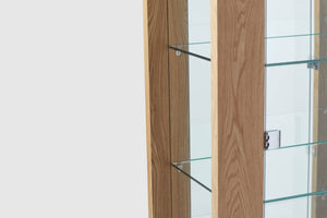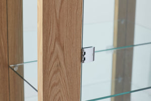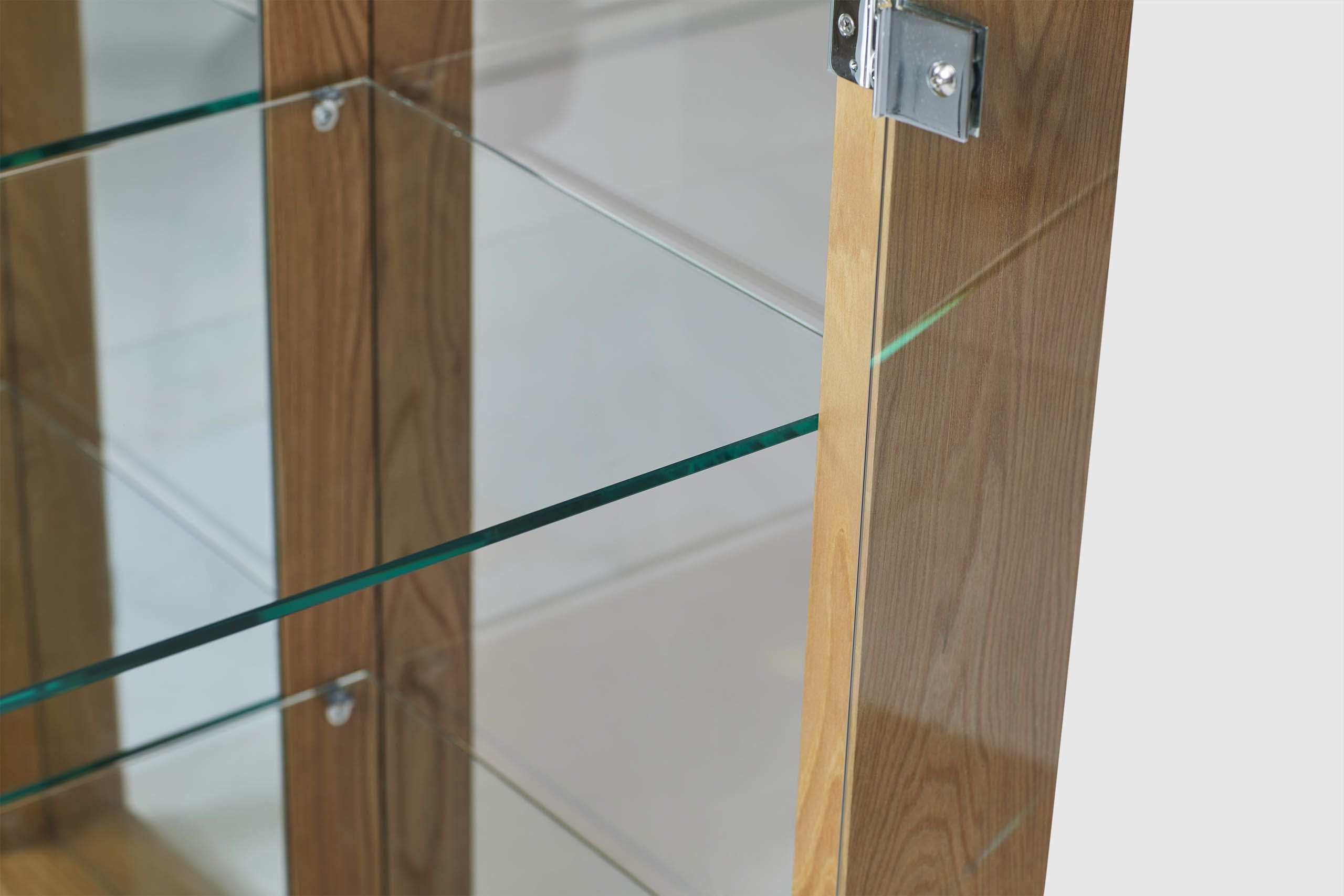This showcase is perfect for displaying glassware and valuables. Featuring two front glass doors, the Saporo is crafted from a beautiful oak timber with a mirror backing. This stunning piece will enhance your home decor by adding a contemporary design. Available in black, natural and havana timber stains.