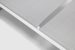 Sleek yet comfortable, the Sevila Sun lounge makes a bold and stylish statement in any outdoor setting. It’s the perfect seating option to relax outdoors with family and friends! With a strong and sturdy powder coated matt white aluminium frame wrapped in textilene synthetic fabric, the Sevila Sun lounge looks cool and stays robust to give you company for those long summer nights. It pairs well with the matching Salsa outdoor dining table, or our extensive range of outdoor lounges that will elevate your outdoor décor to the next level.