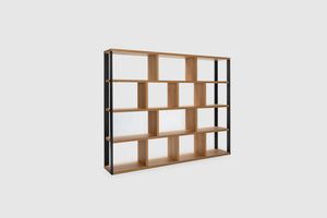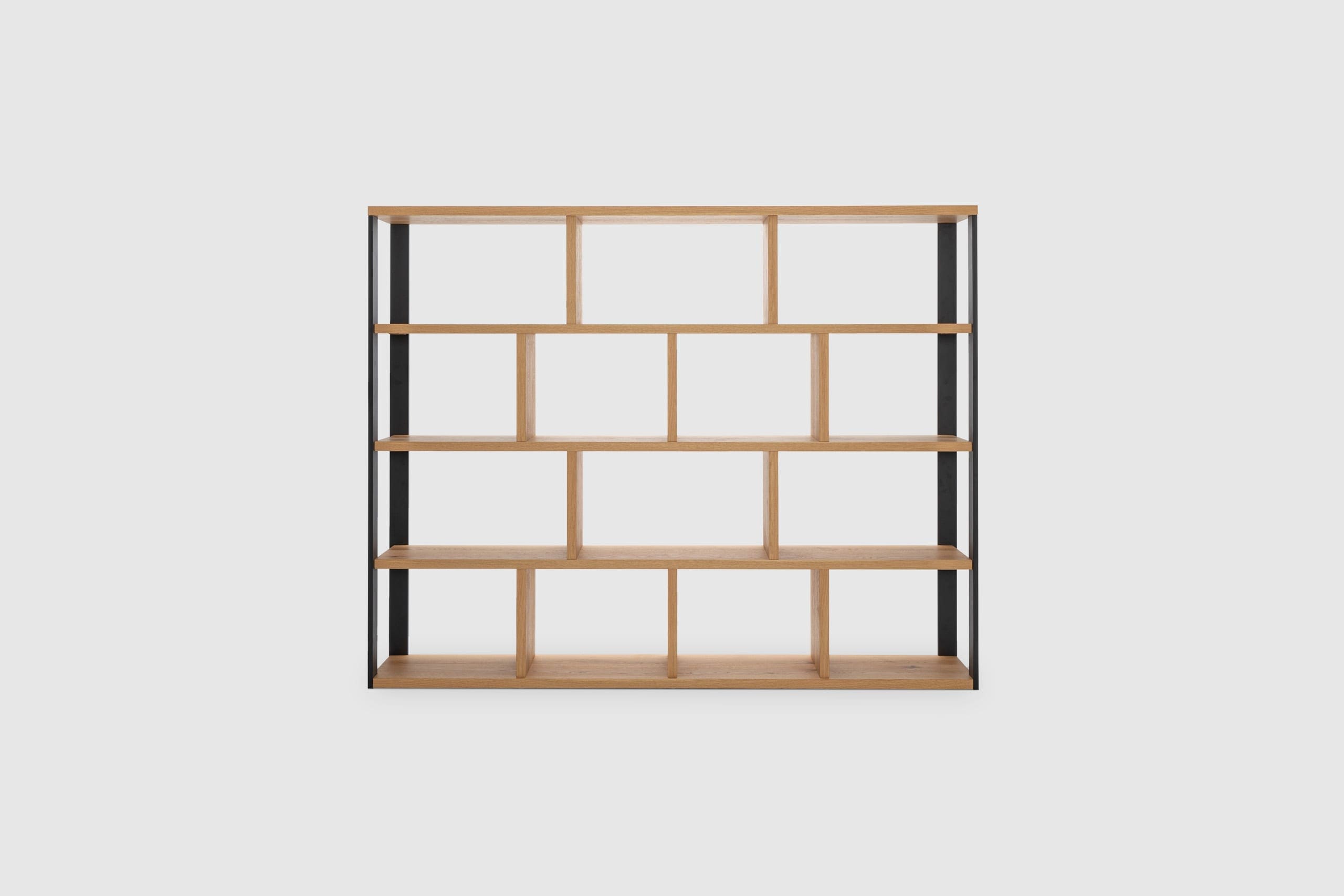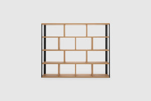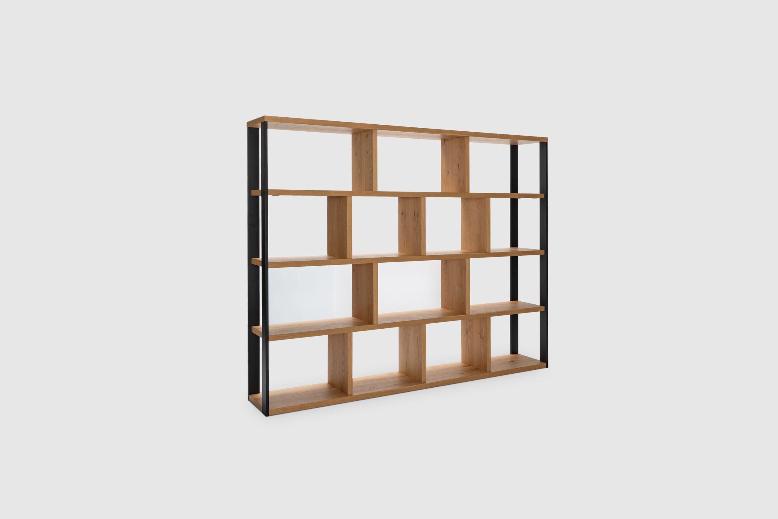 The Sintesi bookcase is perfect for any modern living space. The combination of natural oak timber and a matte black steel frame helps to create an industrial look. The Sintesi is a striking option for any room, with four tiered shelving providing ample storage.