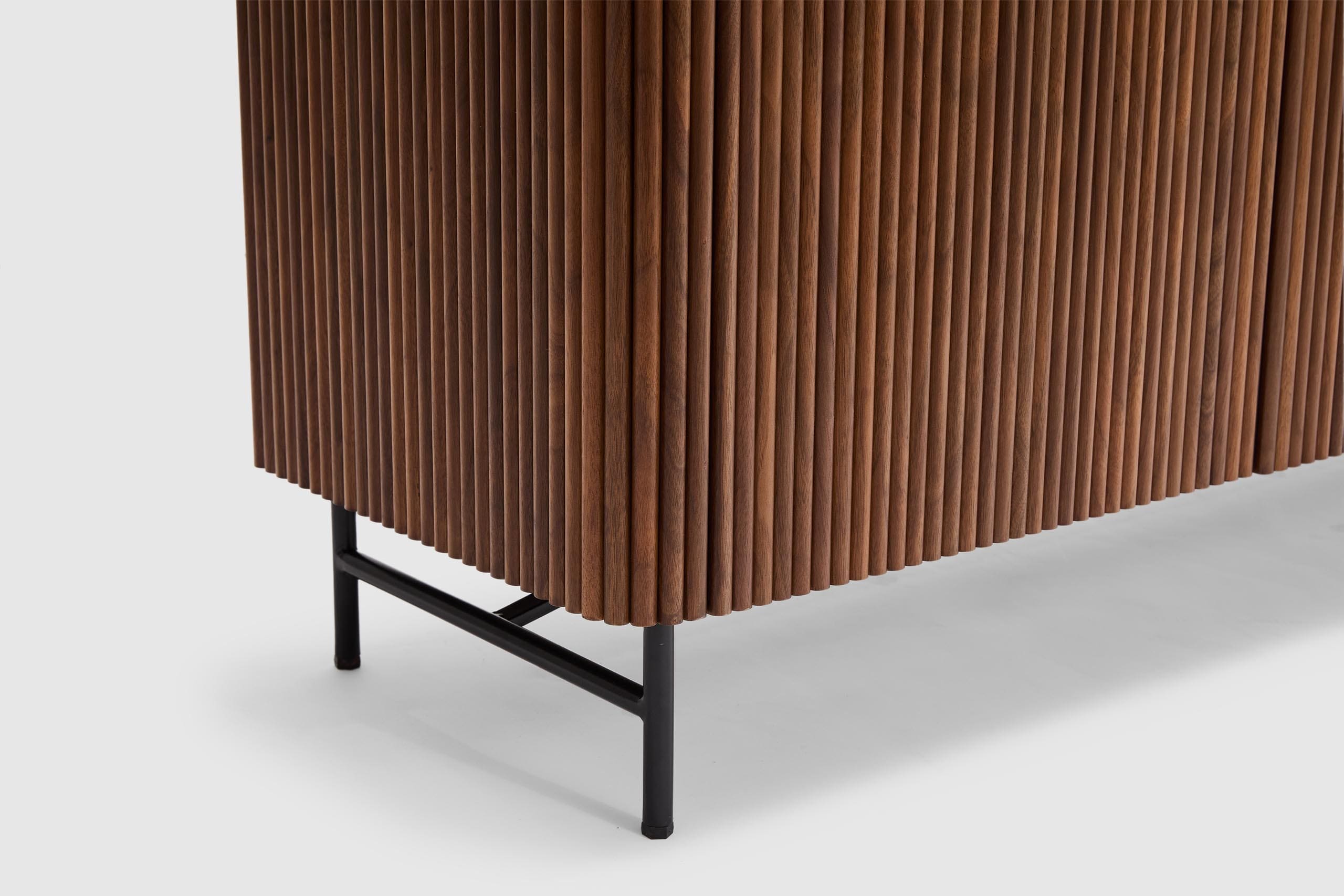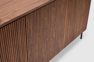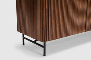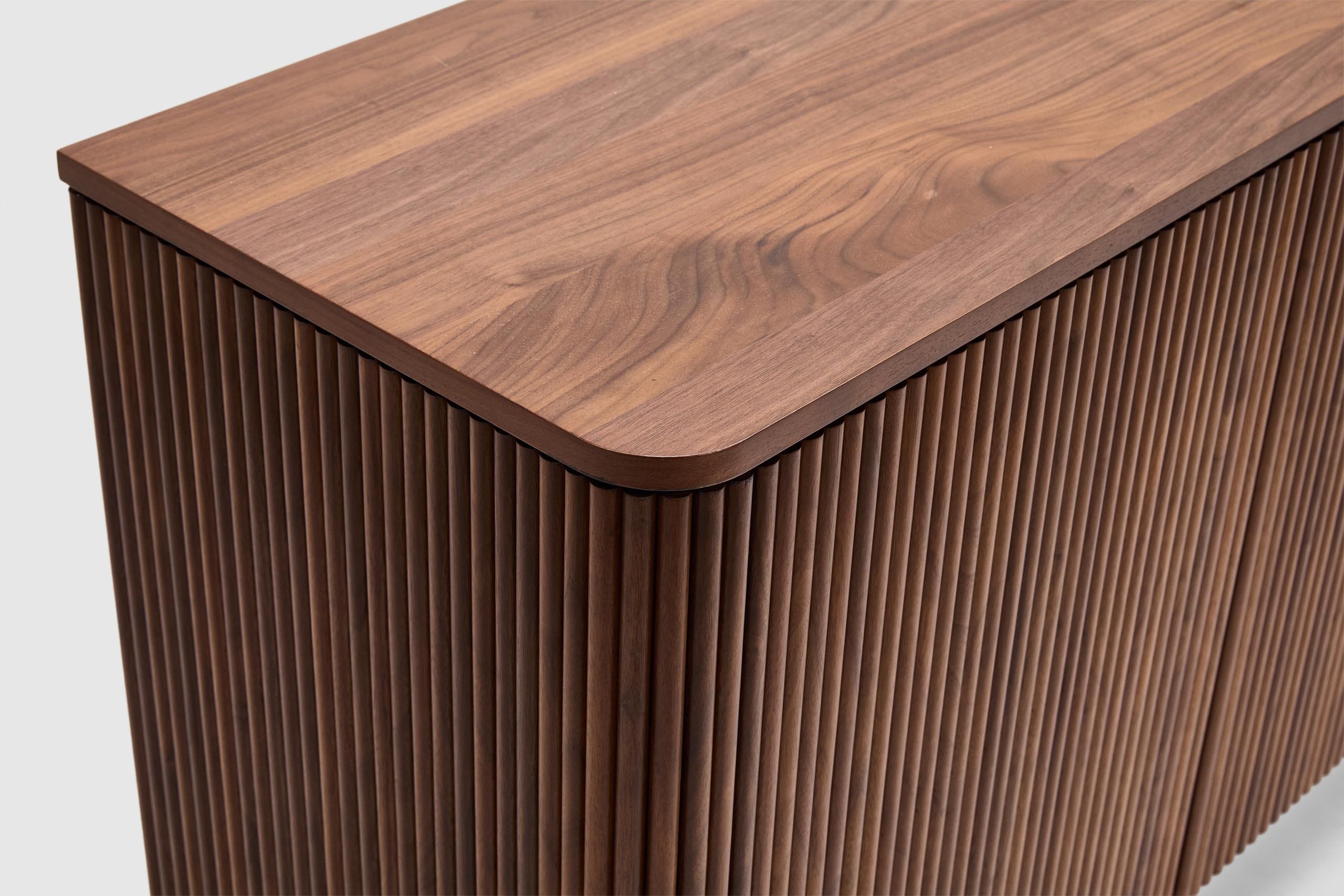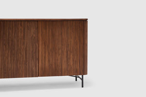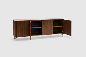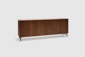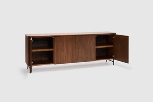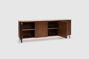 Elevate your home with the rich warmth and refined craftsmanship of the Soren American Walnut collection. Designed to blend seamlessly into contemporary and classic interiors alike, each piece showcases the stunning natural grain of premium American walnut, offering both style and durability. Clean lines and a minimalist aesthetic for effortless elegance are displayed throughout the range, while its functional beauty is thoughtfully designed for modern living, with ample storage and practicality through four doors with internal shelving.