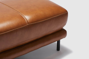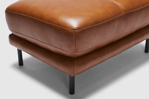 Designed to accompany our Sunrise lounge, this leather ottoman displays a rustic and modern edge as it tops the seat cushion on a slim frame supported by steel legs. The silky leather upholstery ensures every ottoman is a one of a kind Adriatic exclusive product.