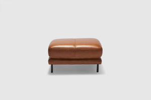 Designed to accompany our Sunrise lounge, this leather ottoman displays a rustic and modern edge as it tops the seat cushion on a slim frame supported by steel legs. The silky leather upholstery ensures every ottoman is a one of a kind Adriatic exclusive product.