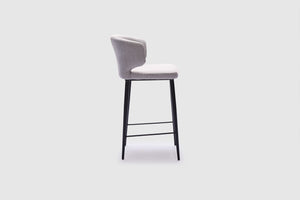 The Taz Bar Stool offers a sophisticated and practical seating option, seamlessly combining a black metal base with the sleek contours of light grey fabric in both the seat and backrest. With its striking presence, Taz is perfect for achieving a modern and sophisticated aesthetic, making it an ideal addition to any interior.