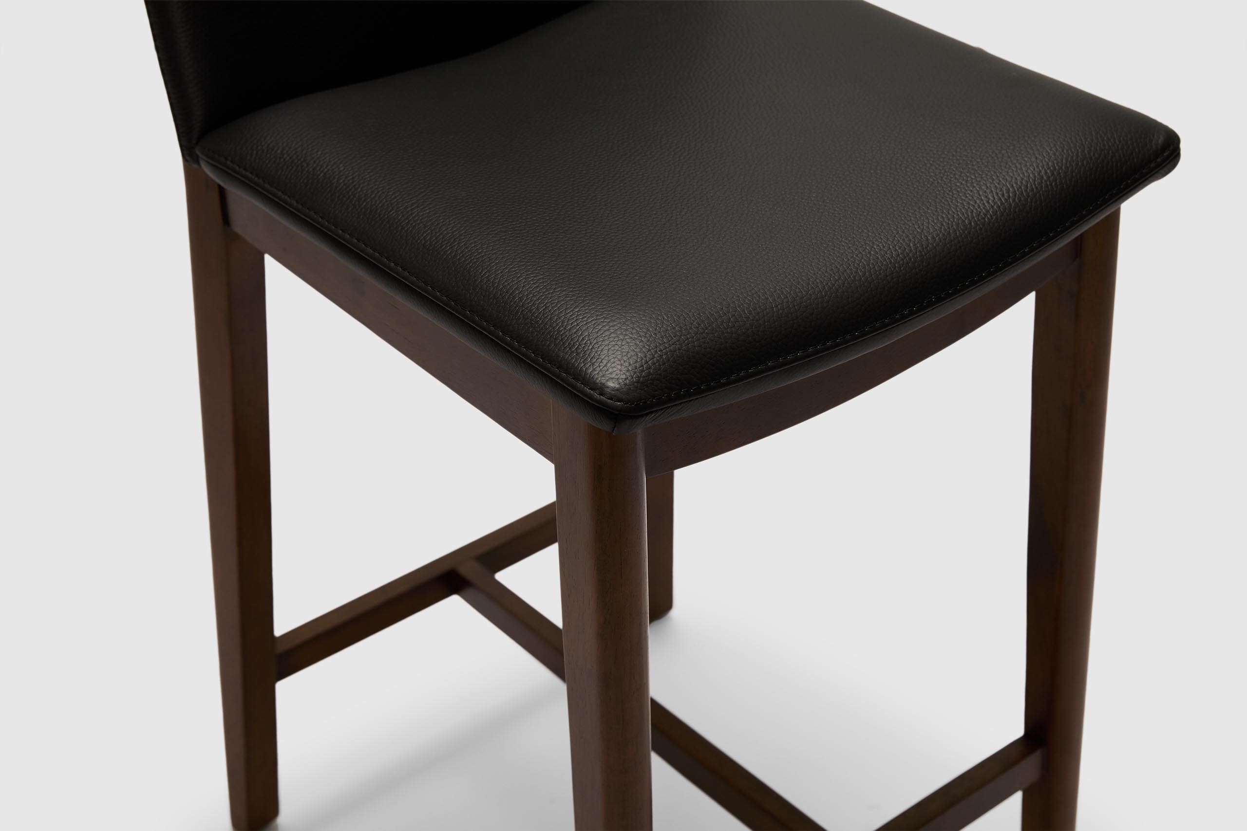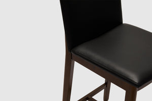 A modern spin on a classic silhouette. The Tevez bar stool boasts clean contemporary lines and a robust solid timber frame. The comfortable seat, upholstered with prestige leather makes for an understated piece that adds personality to any modern dining room.