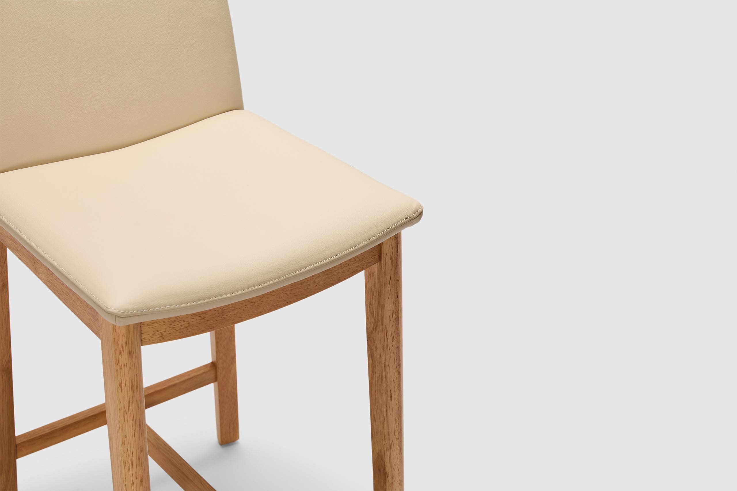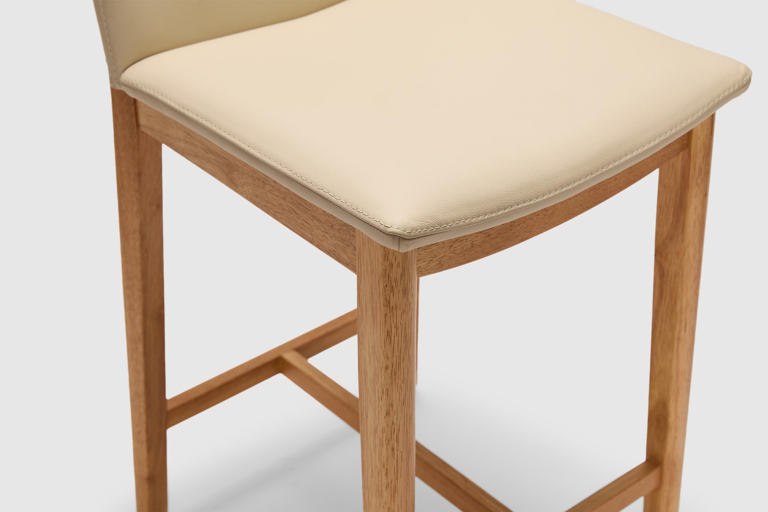 A modern spin on a classic silhouette. The Tevez bar stool boasts clean contemporary lines and a robust solid timber frame. The comfortable seat, upholstered with prestige leather makes for an understated piece that adds personality to any modern dining room.