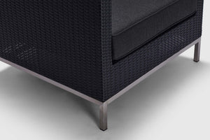 The Torquay outdoor sofa adds a relaxed resort side style to contemporary and eclectic outdoor spaces. Featuring a stylish Rehau Raucord weave frame with tapered aluminium legs, and European Sunbrella fabric with quick-dry cushions, Torquay is a cosy addition to any outdoor area. Its tightly woven sides and plush sunproof and mildew resistant cushions make it easy to enjoy your alfresco evenings in peace and comfort.