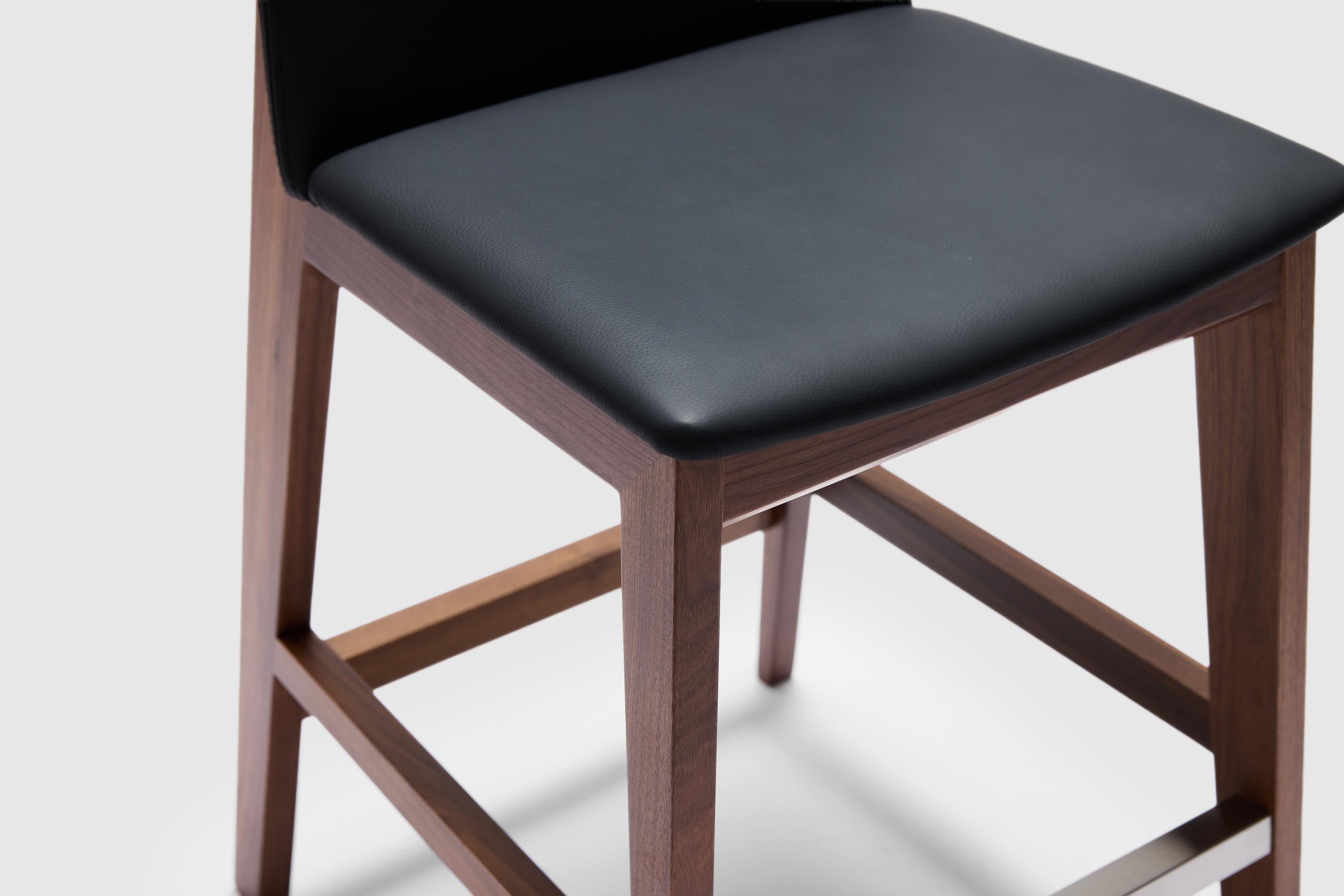 The Vega stool features a solid American walnut frame, expertly upholstered in prestige leather. Sophisticated in design, the Vega stool will add a touch of flair to your home. Also available as a matching dining chair. Vega is an Adriatic exclusive product
