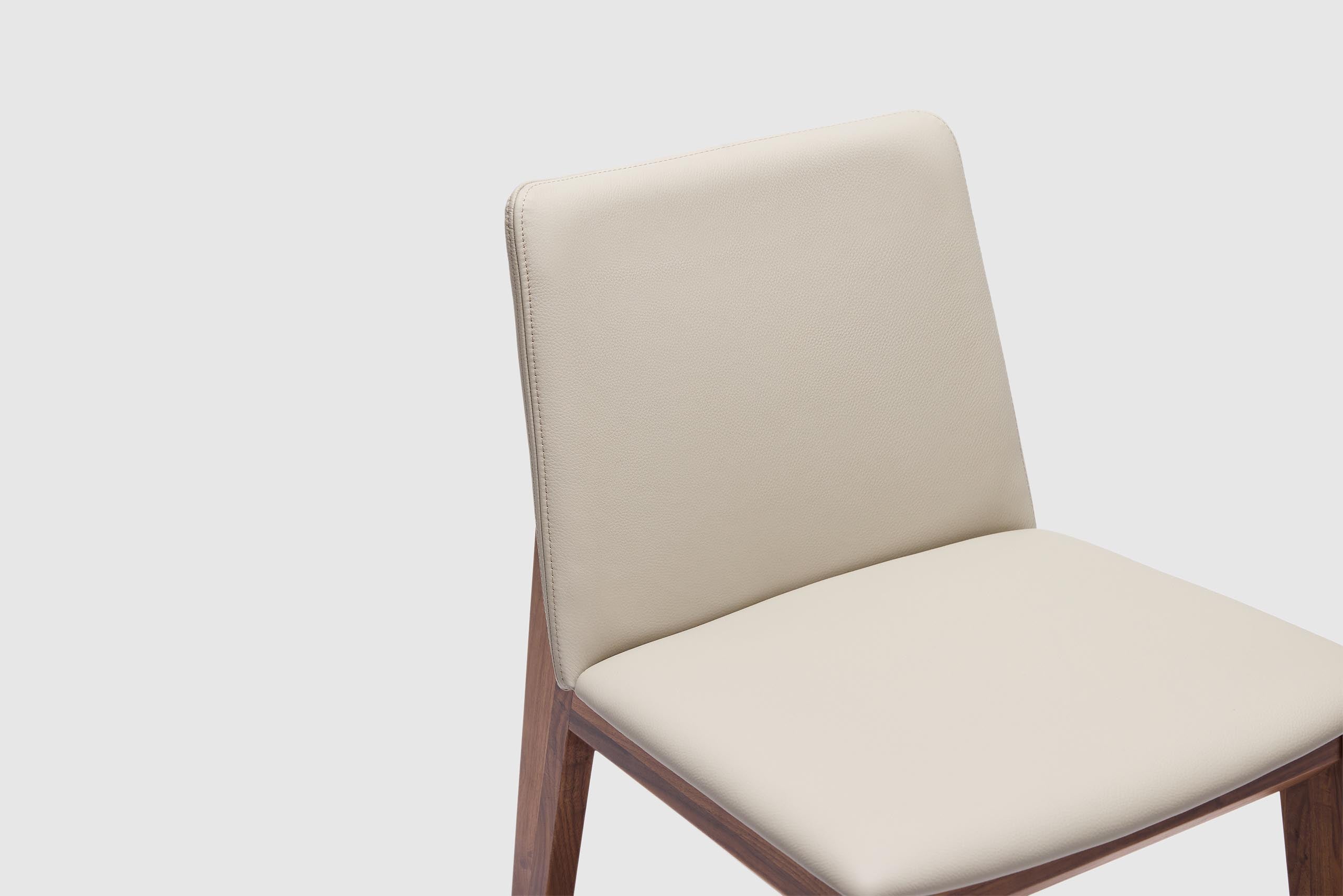 The Vega dining chair features a solid American walnut frame, expertly upholstered in prestige leather. Sophisticated in design, the Vega chair will add a touch of flair to your home. Also available as a matching bar stool.